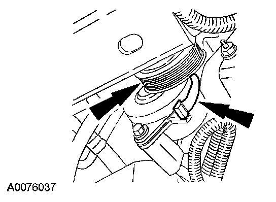 - Push the spring clip towards the belt tensioner to lock the accessory drive belt tensioner in place.
