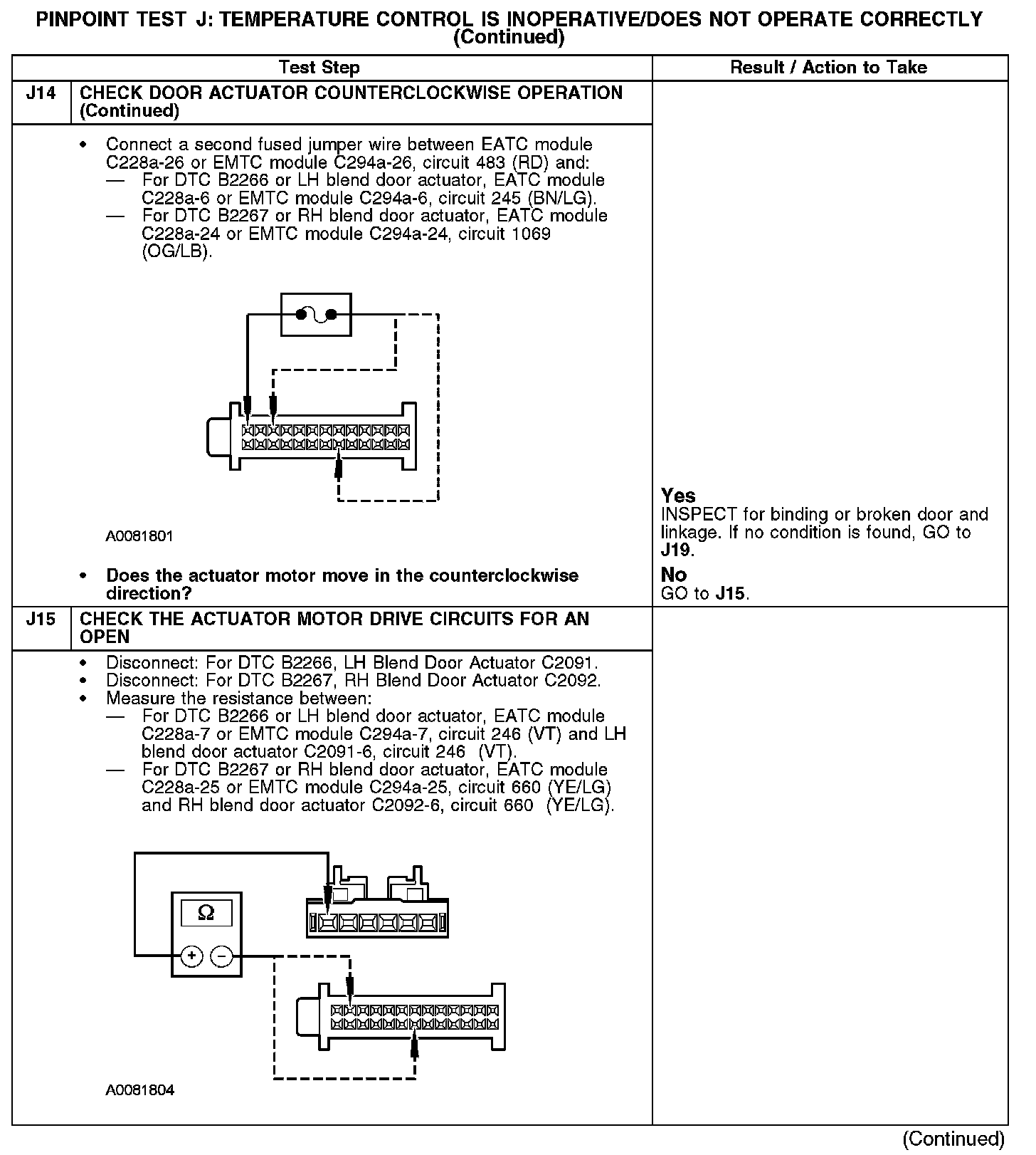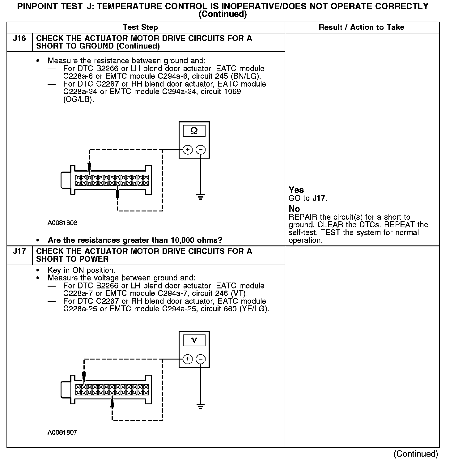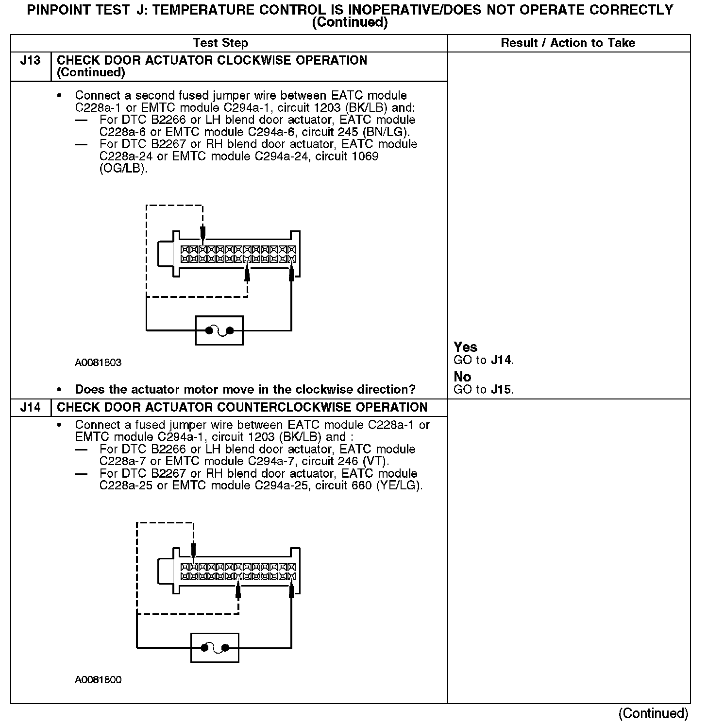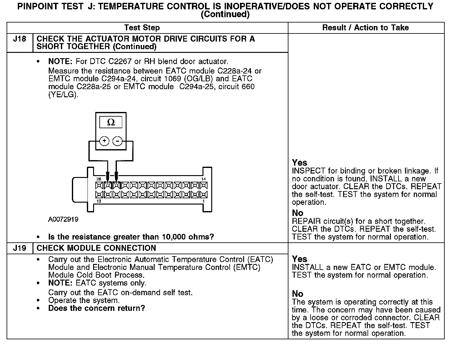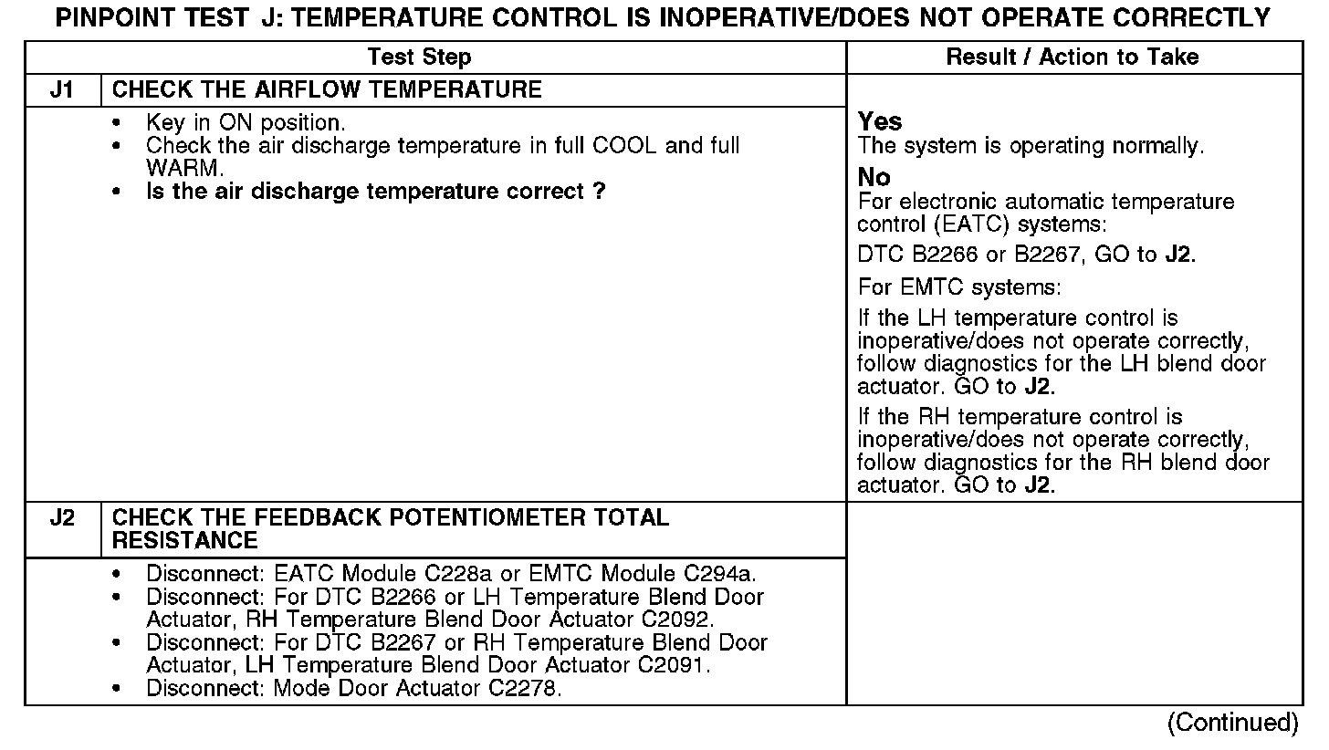 PINPOINT TEST J: TEMPERATURE CONTROL IS INOPERATIVE/DOES NOT OPERATE CORRECTLYJ1-J2: