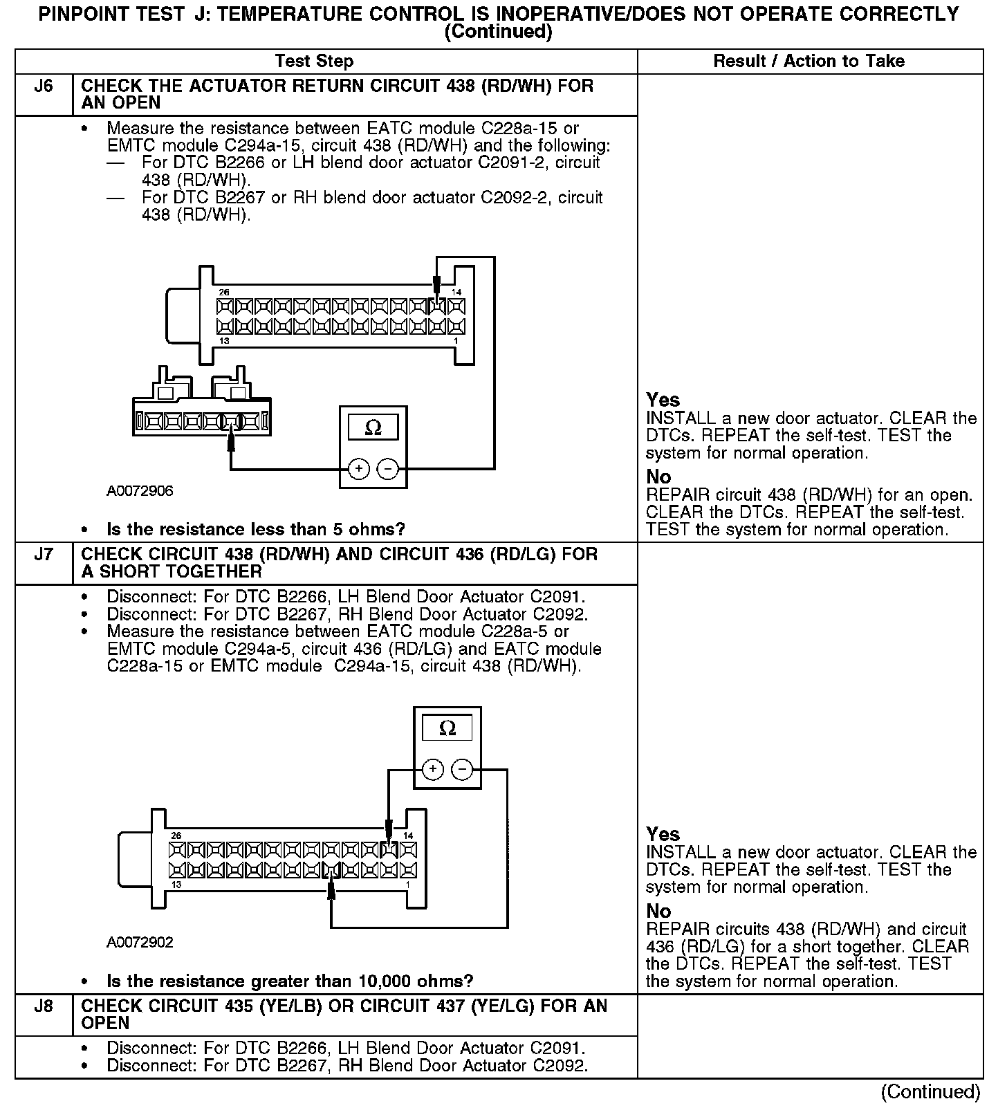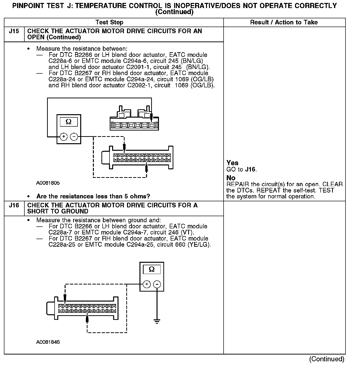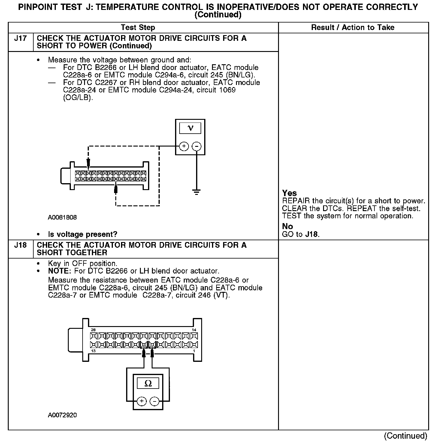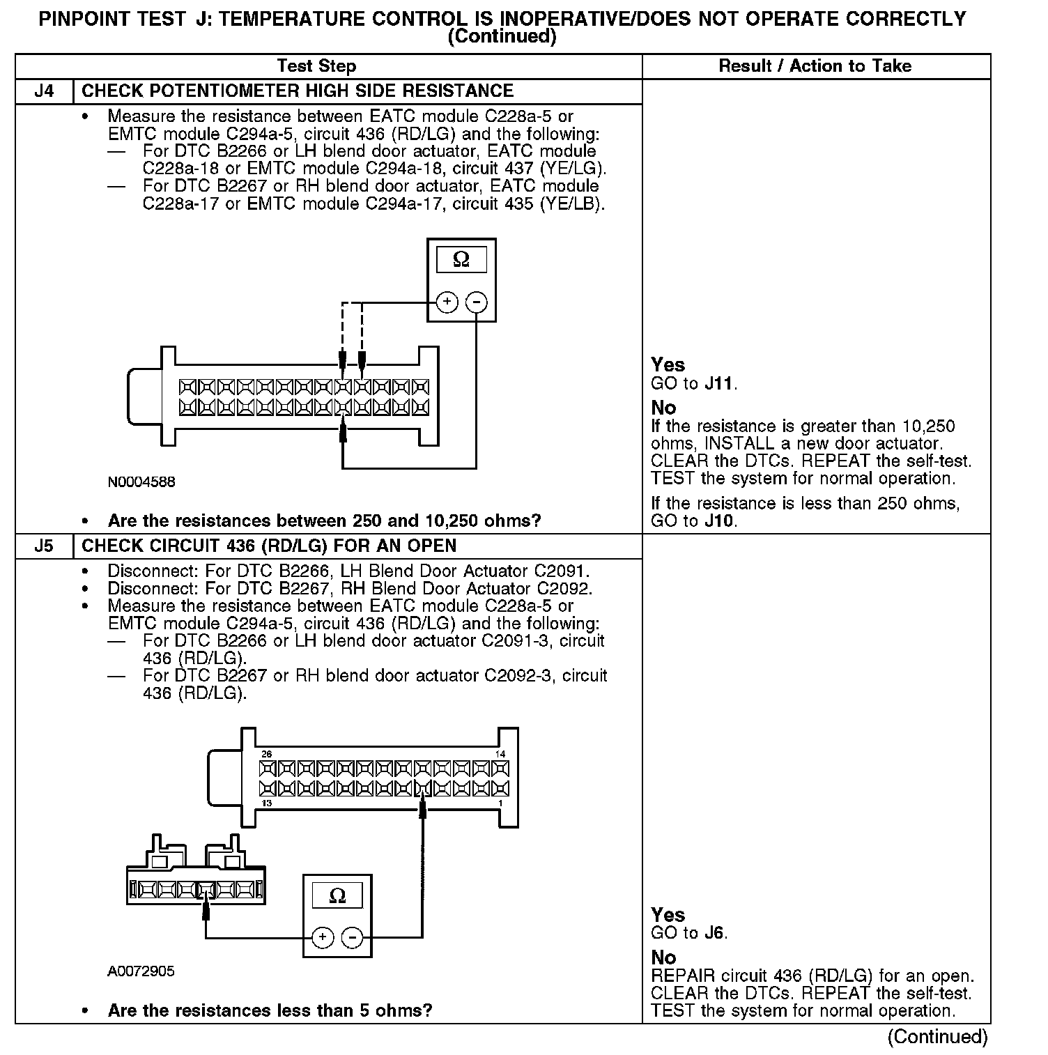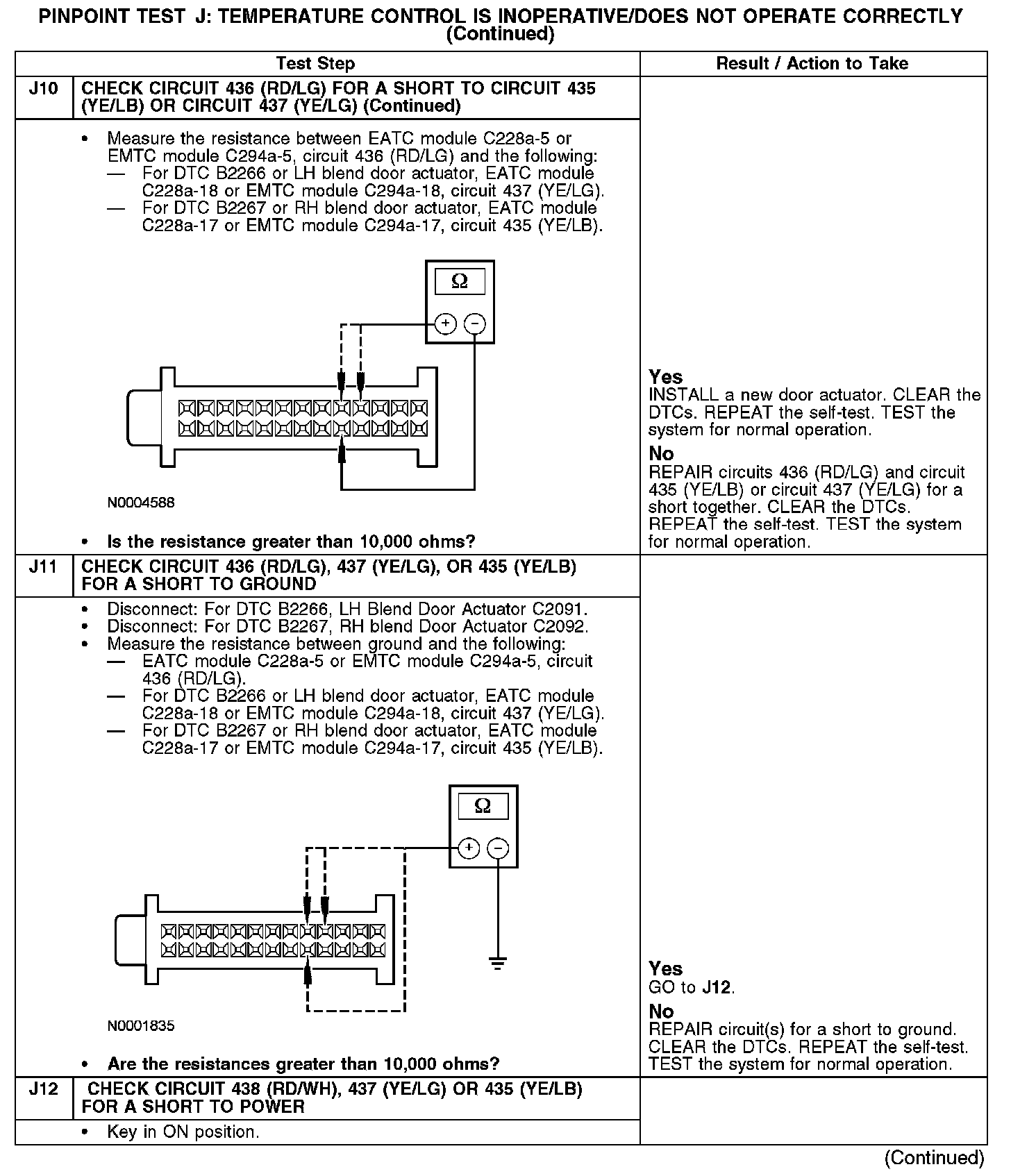 PINPOINT TEST J: TEMPERATURE CONTROL IS INOPERATIVE/DOES NOT OPERATE CORRECTLYJ1-J2:
