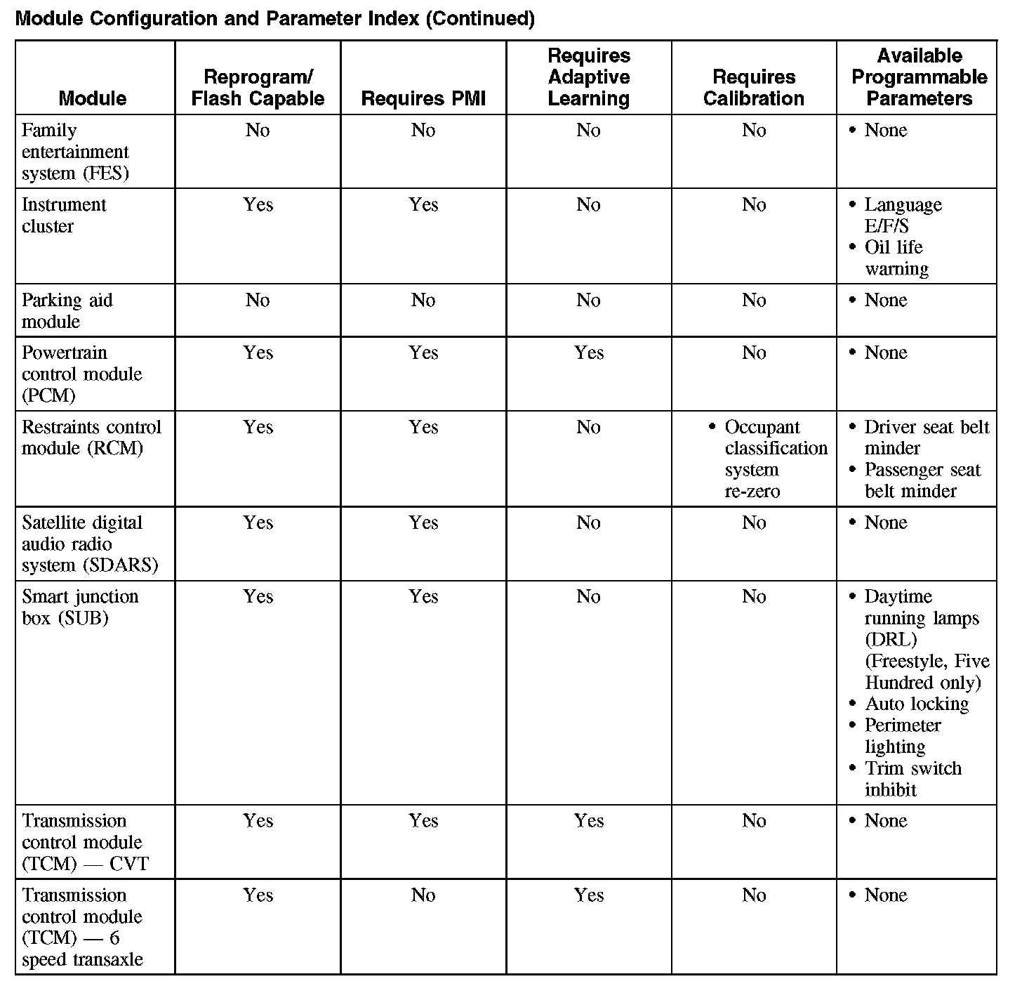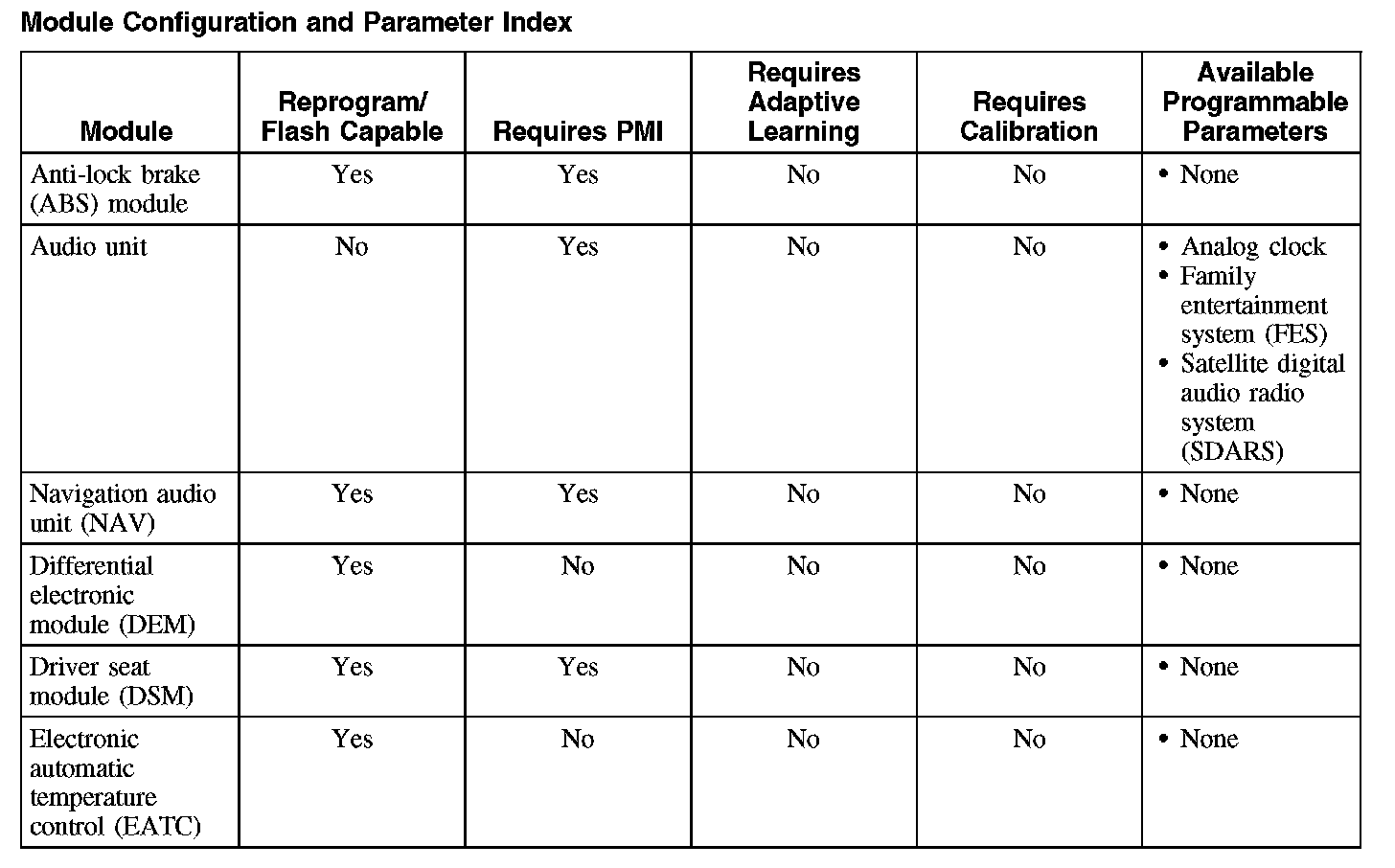 Programmable parameters are customer preference items that may be modified by the dealer via scan tool or in some cases modified by the customer following a procedure listed in the vehicle Owner's Literature. While many configuration options may exist for a module, only a few of these options are programmable parameters.