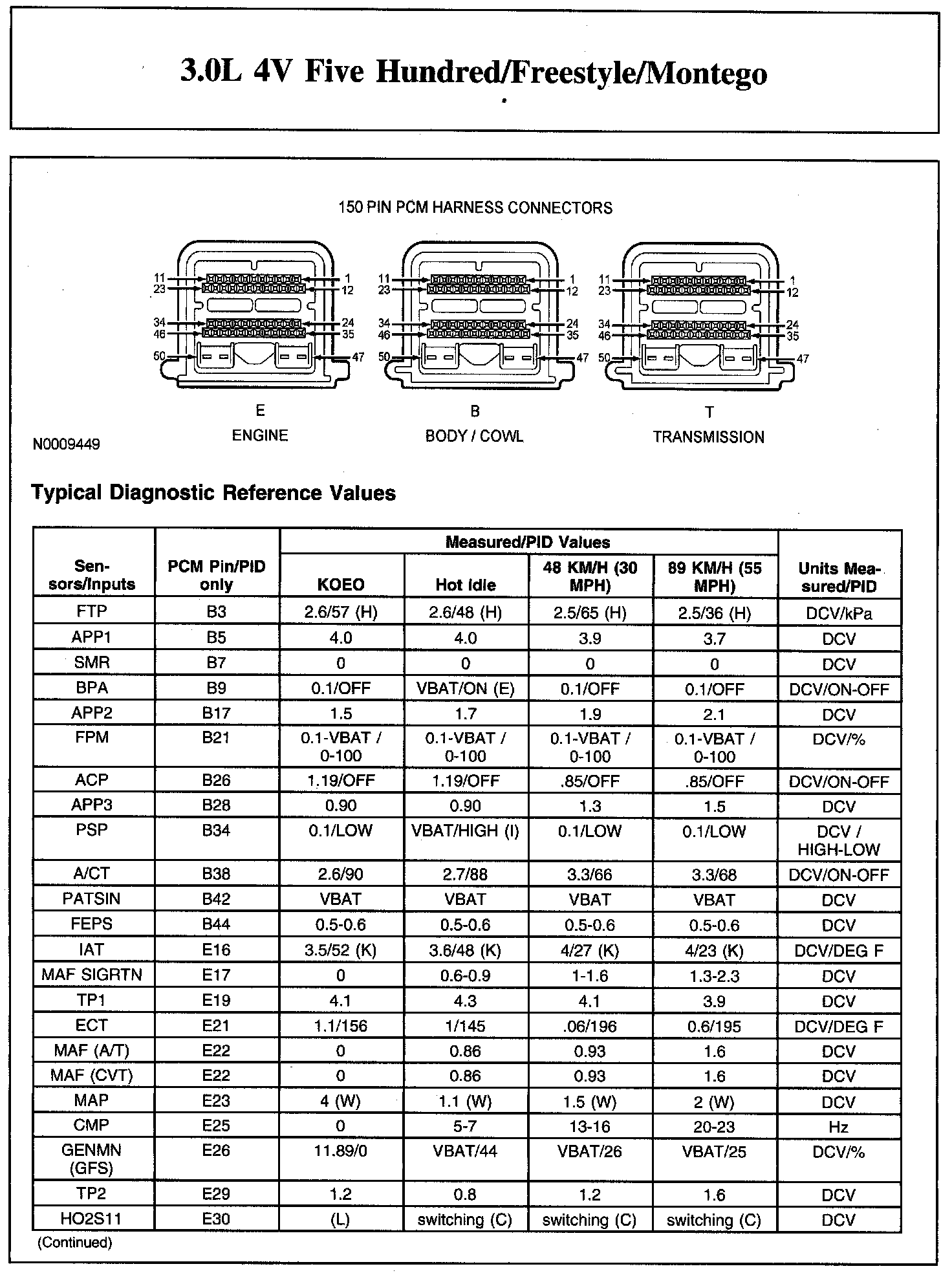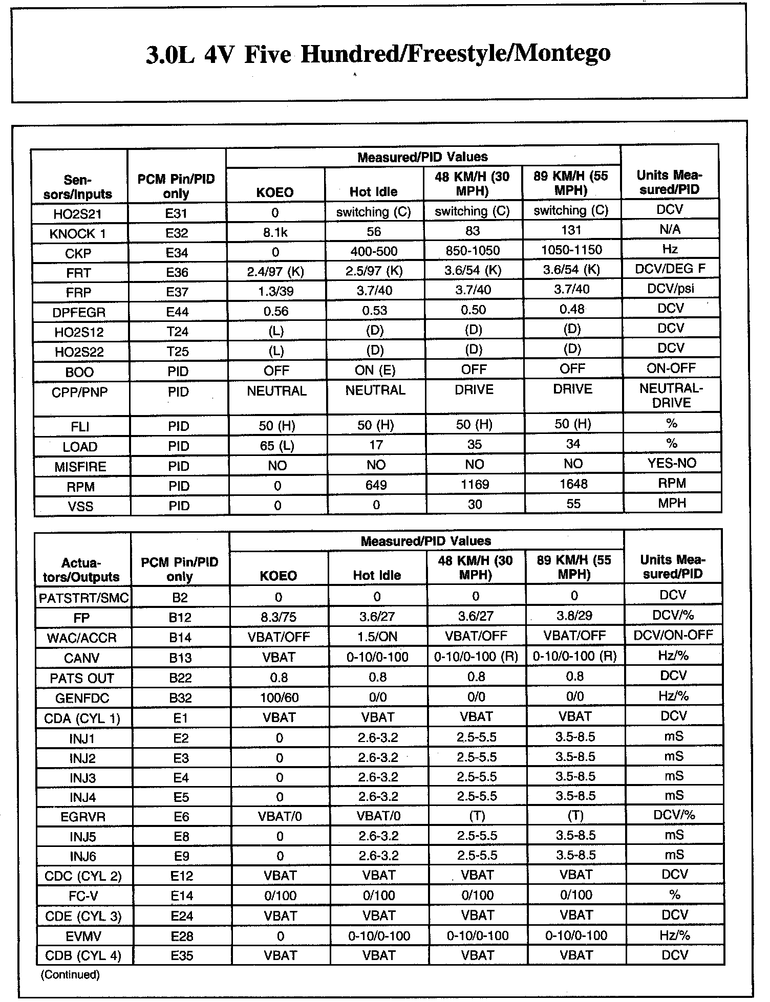 The Typical Diagnostic Reference Value Charts do not display fault parameter identifications (PIDs). These are PIDs which indicate a hard fault with the circuit. They display a value of YES or NO and are PIDs ending with the letter F.
