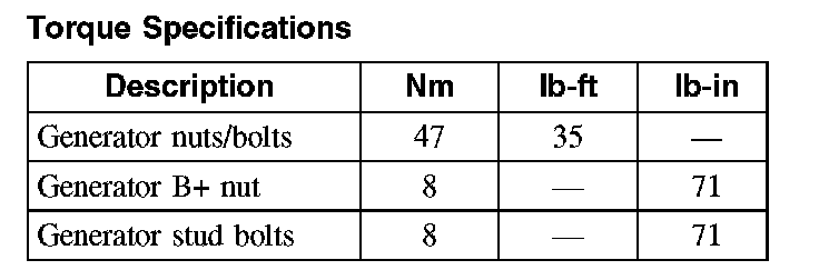 Torque Specifications: