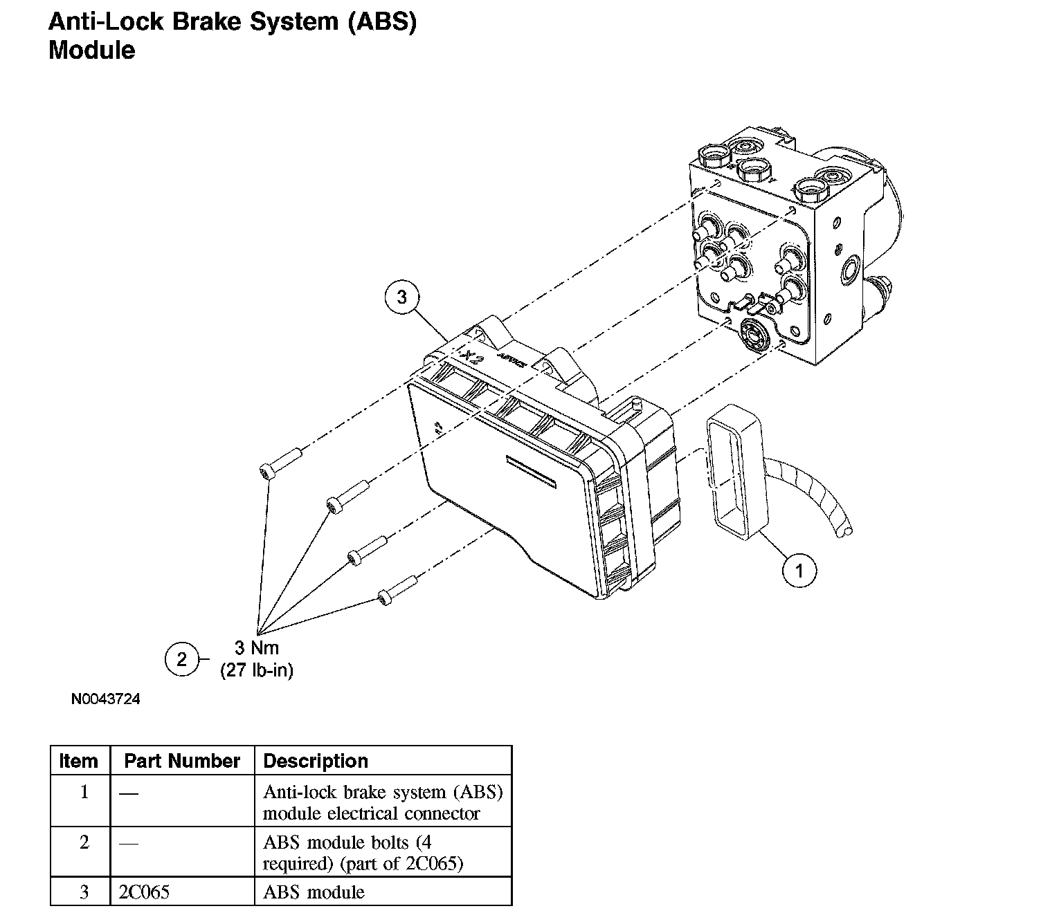 2. NOTE: The anti-lock brake system (ABS) module bolts must be removed and installed in the sequence shown.