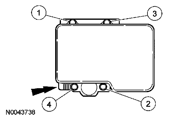 Remove the 4 anti-lock brake system (ABS) module bolts in the sequence shown.