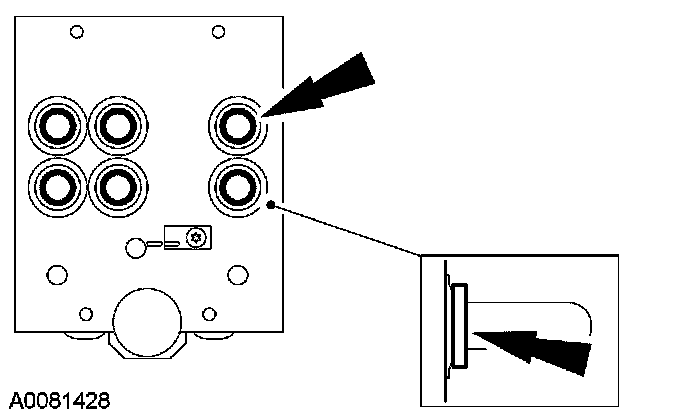 CAUTION: A new seal kit must be used when installing the ABS module. The old seals must be discarded as they may cause a leak between the ABS module and the HCU.