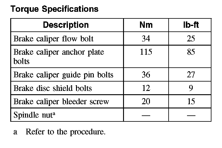 Torque Specifications, Front