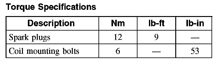 Torque Specifications: