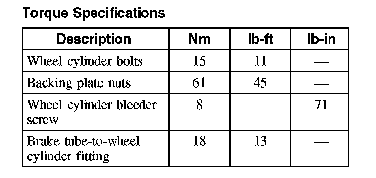 Torque Specifications:
