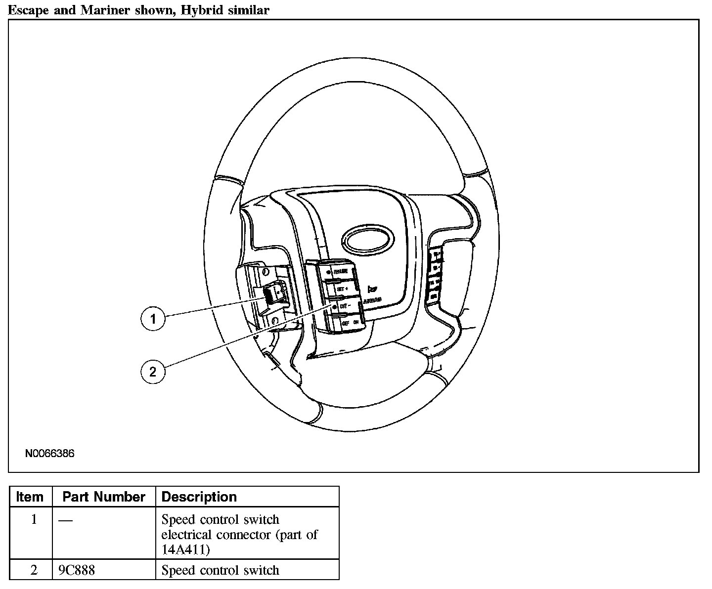 SPEED CONTROL SWITCHEscape and Mariner Shown, Hybrid Similar:
