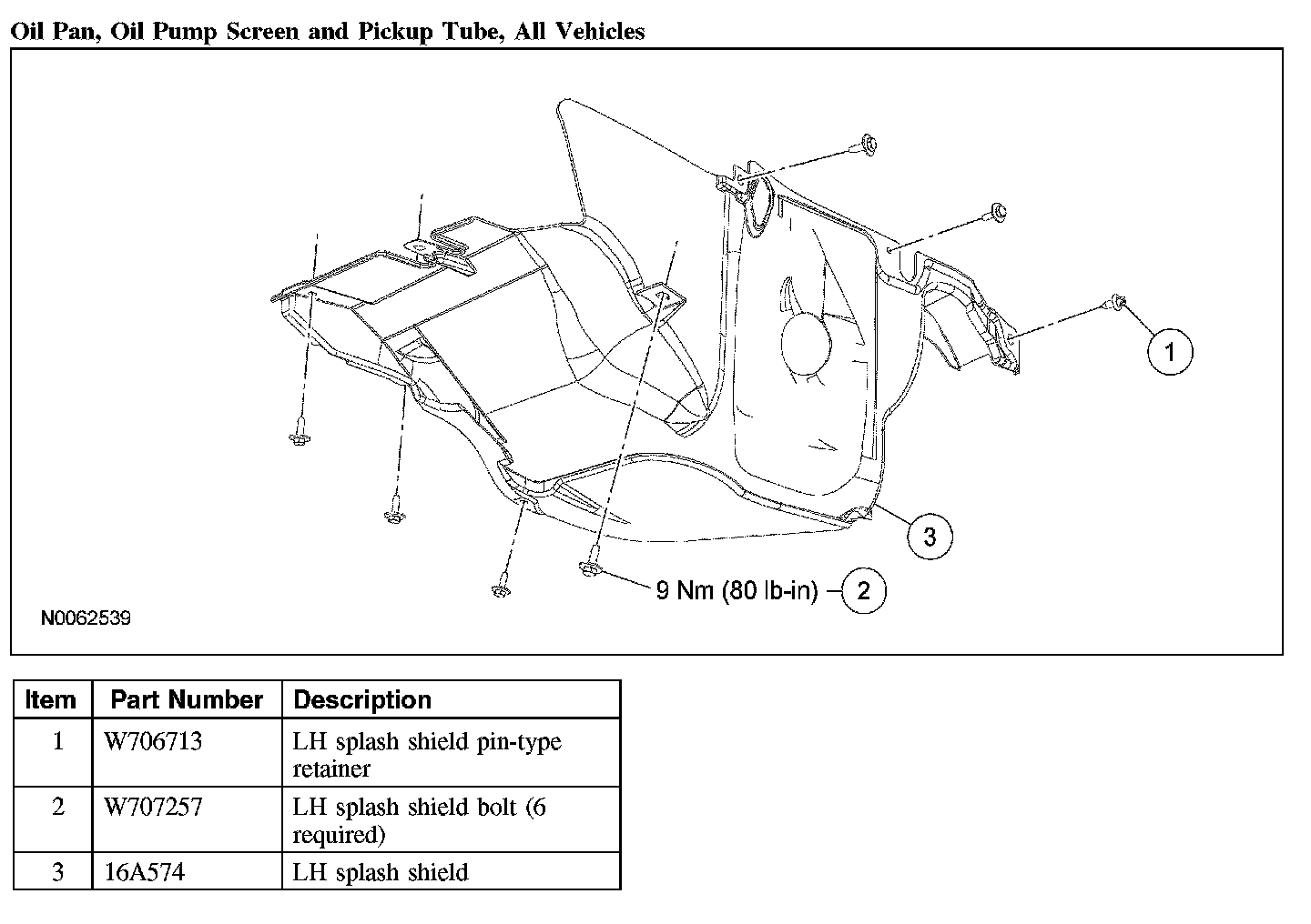 Oil Pan, Oil Pump Screen and Pickup Tube, All Vehicles: