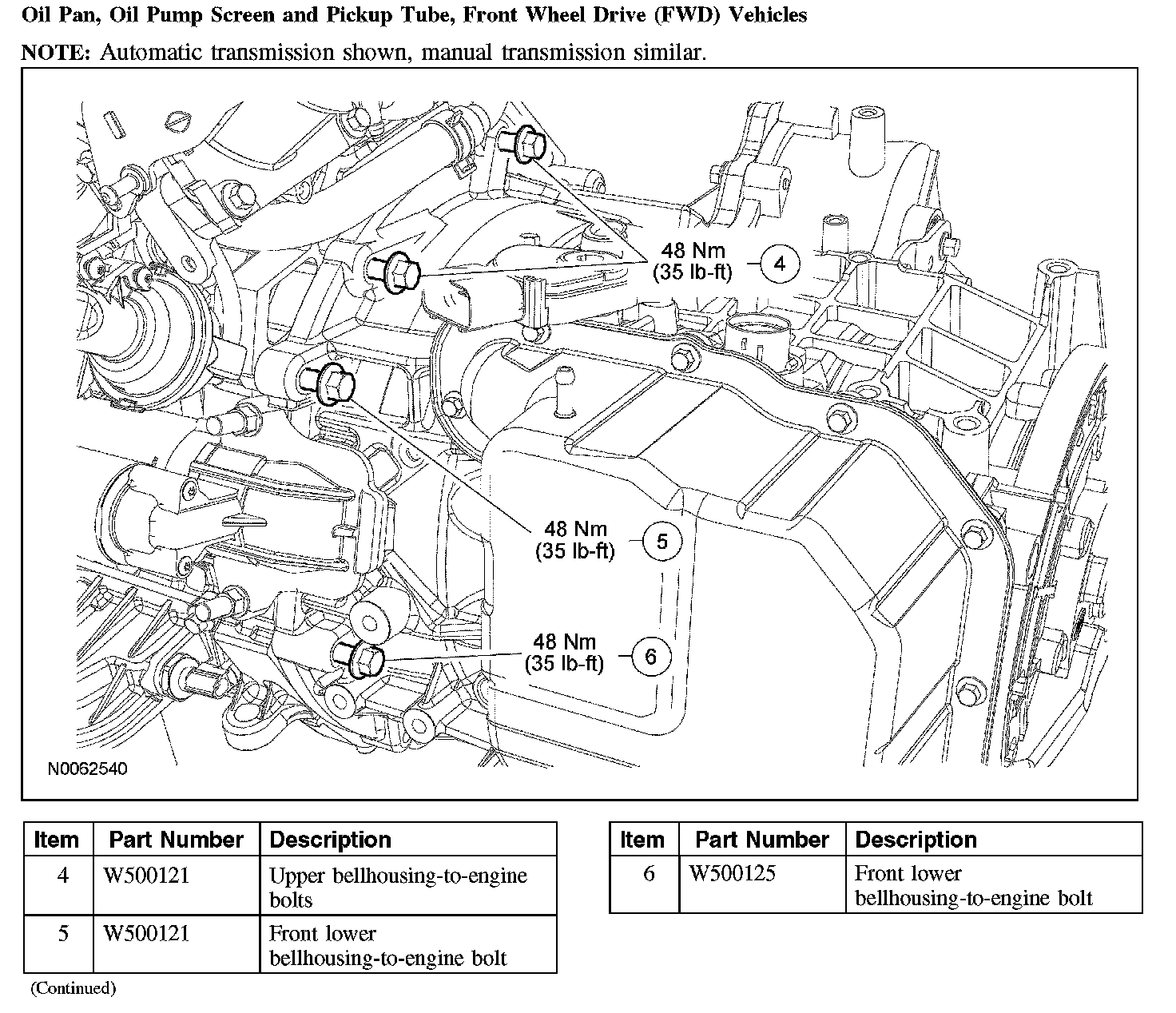 Oil Pan, Oil Pump Screen and Pickup Tube, Front Wheel Drive (FWD) Vehicles: