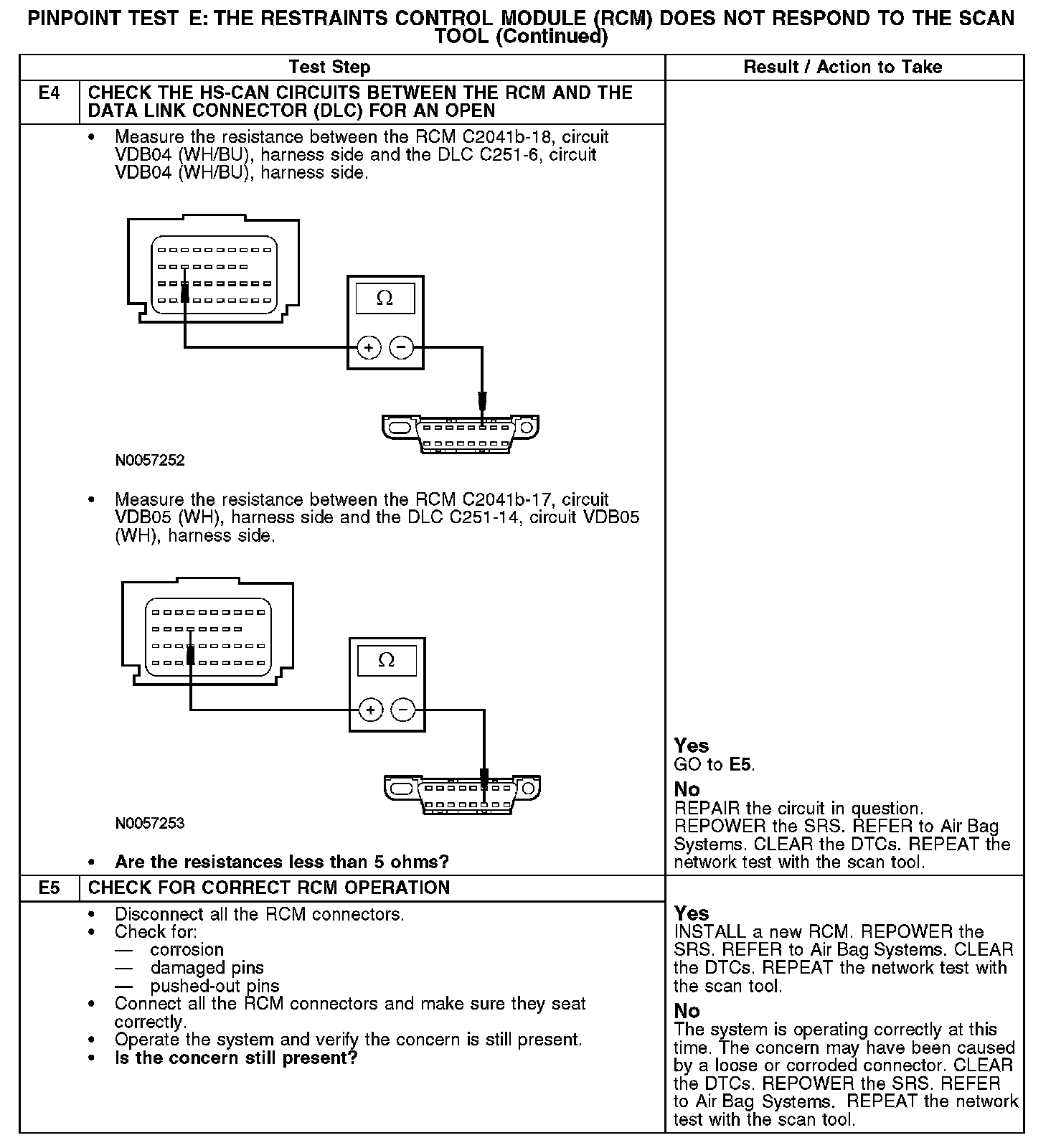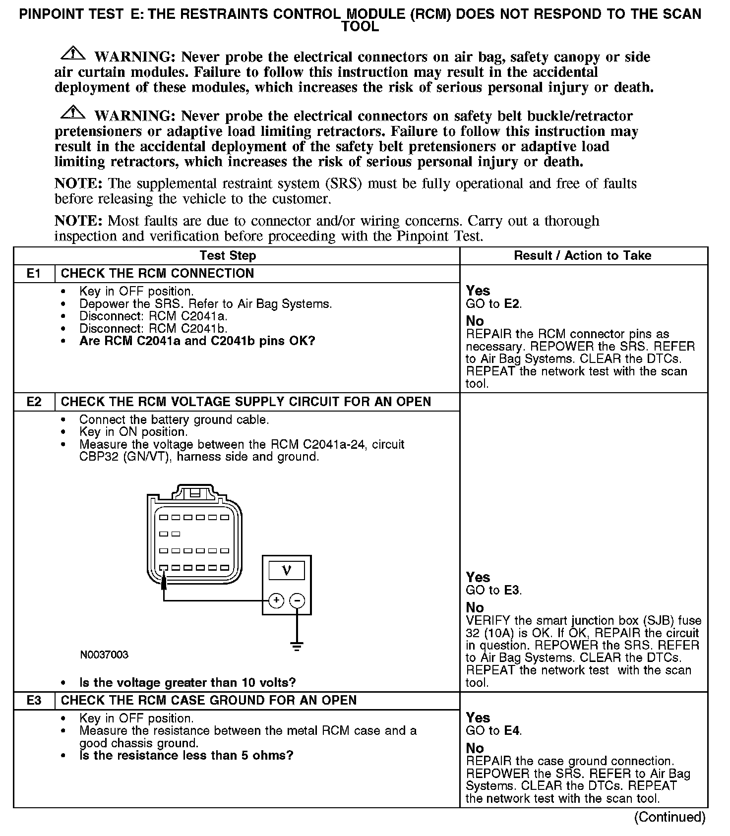 PINPOINT TEST E: THE RESTRAINTS CONTROL MODULE (RCM) DOES NOT RESPOND TO THE SCAN TOOL