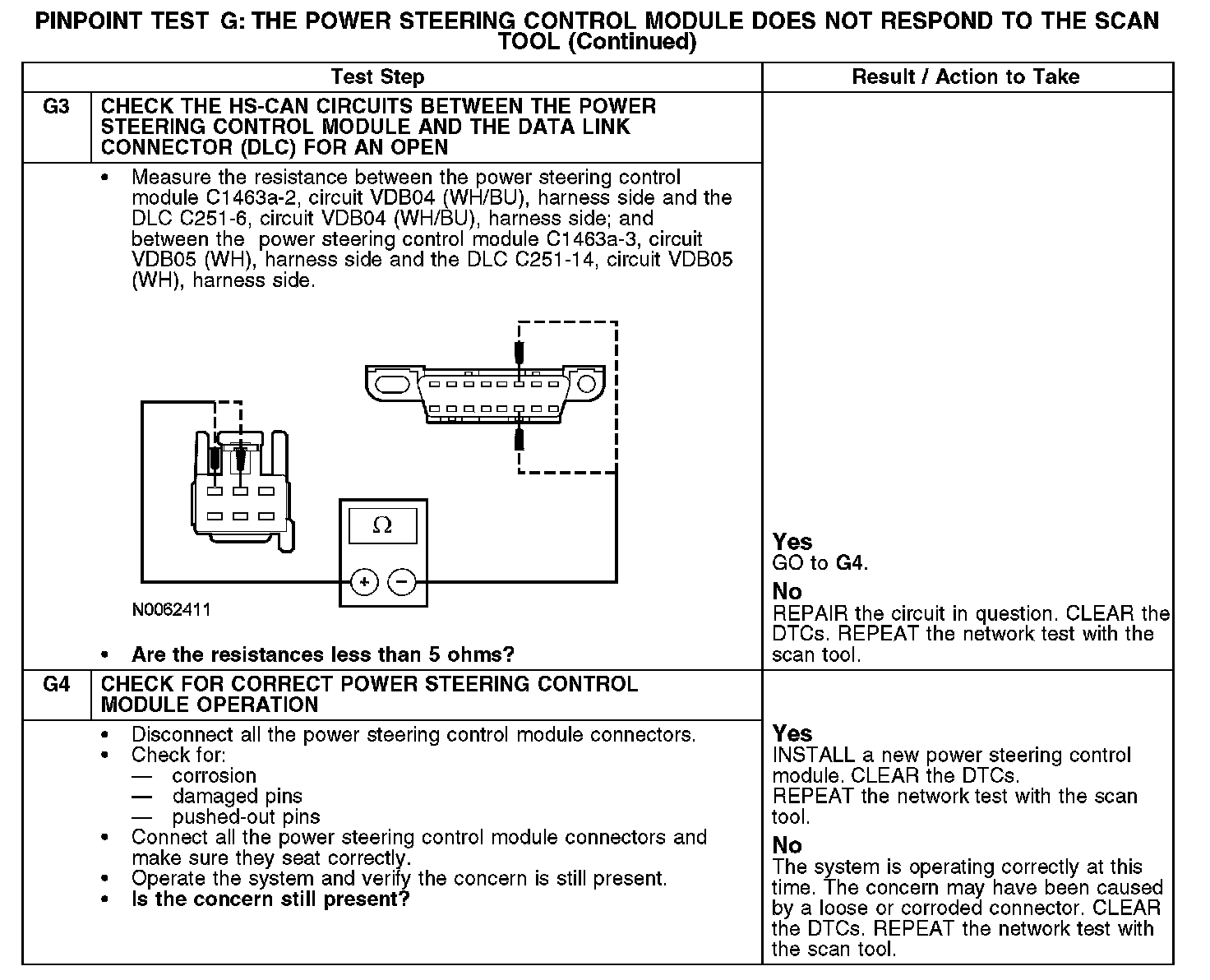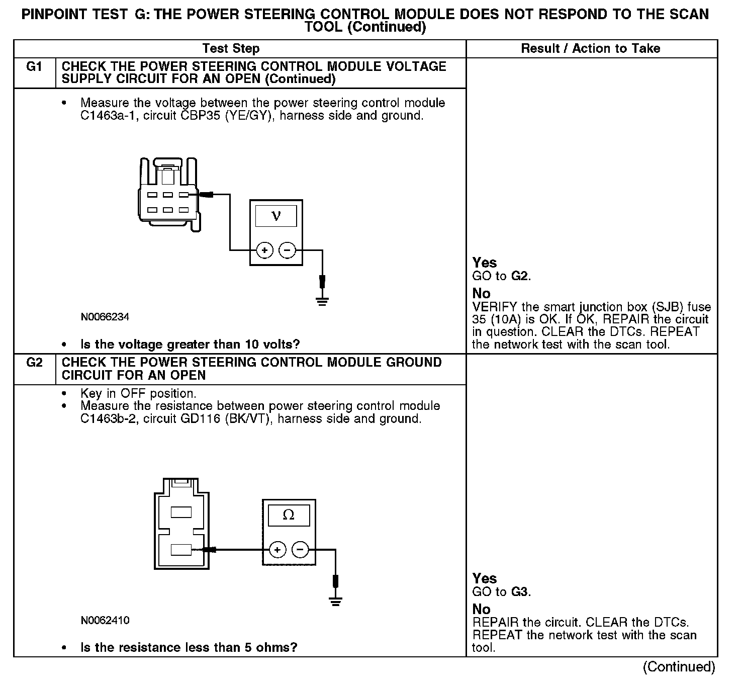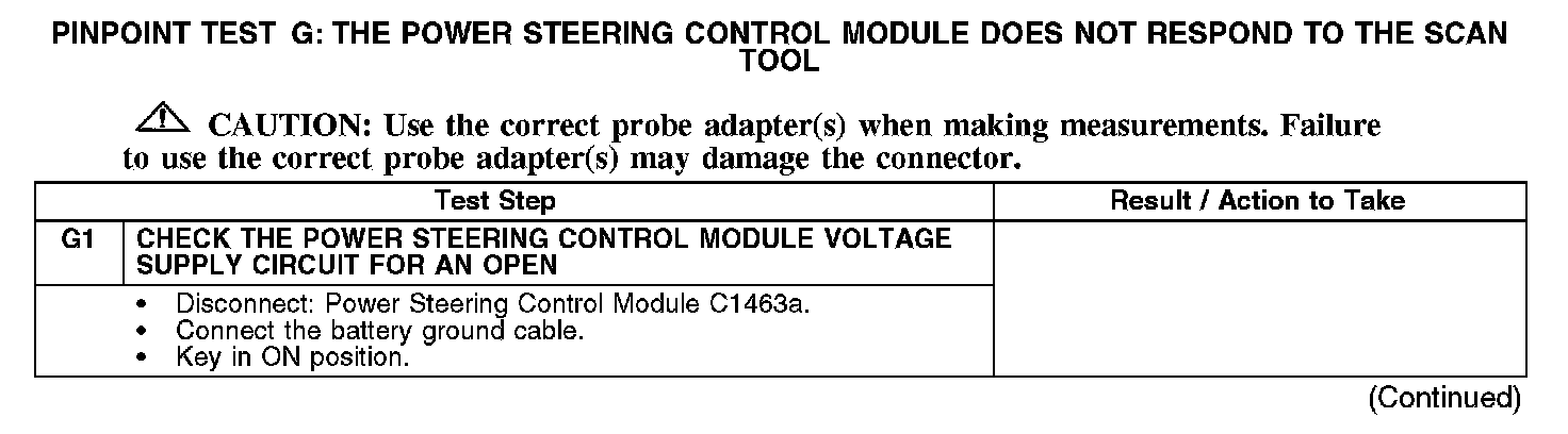 PINPOINT TEST G: THE POWER STEERING CONTROL MODULE DOES NOT RESPOND TO THE SCAN TOOL