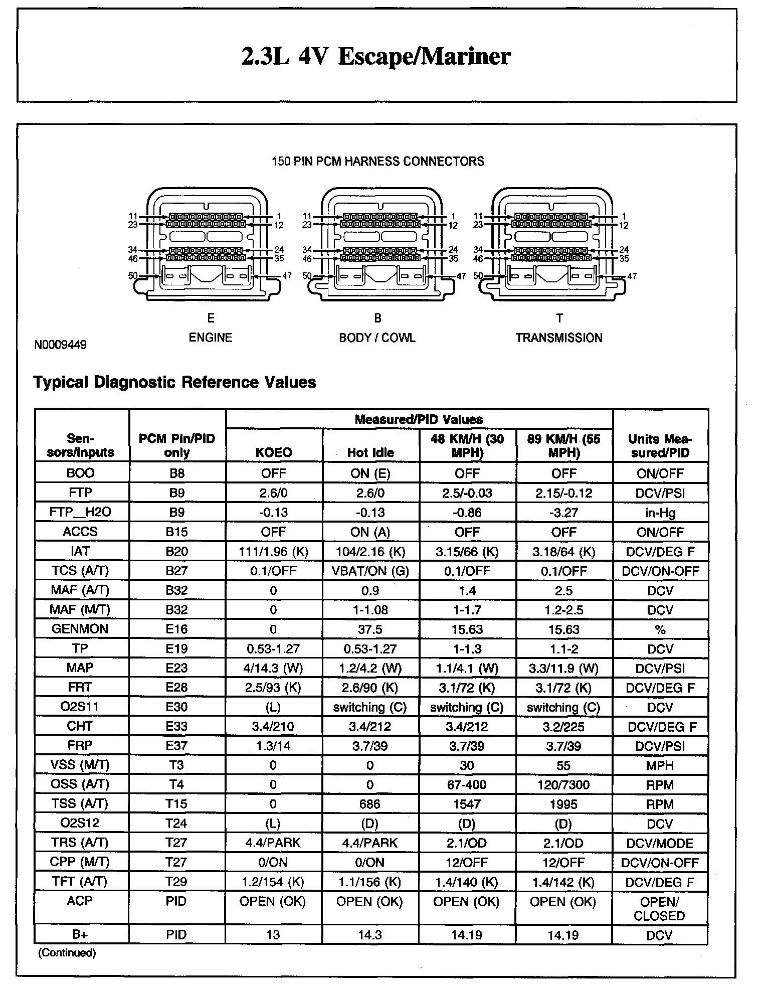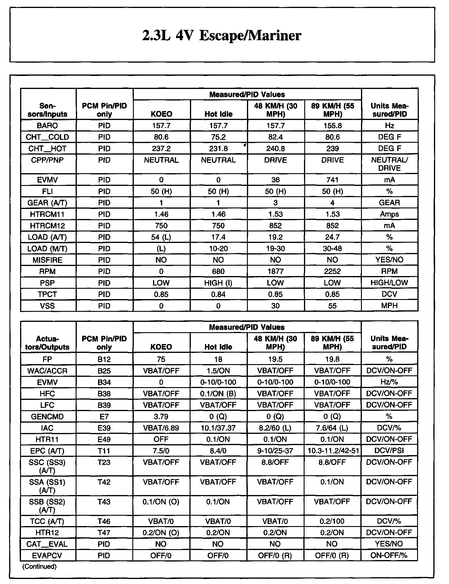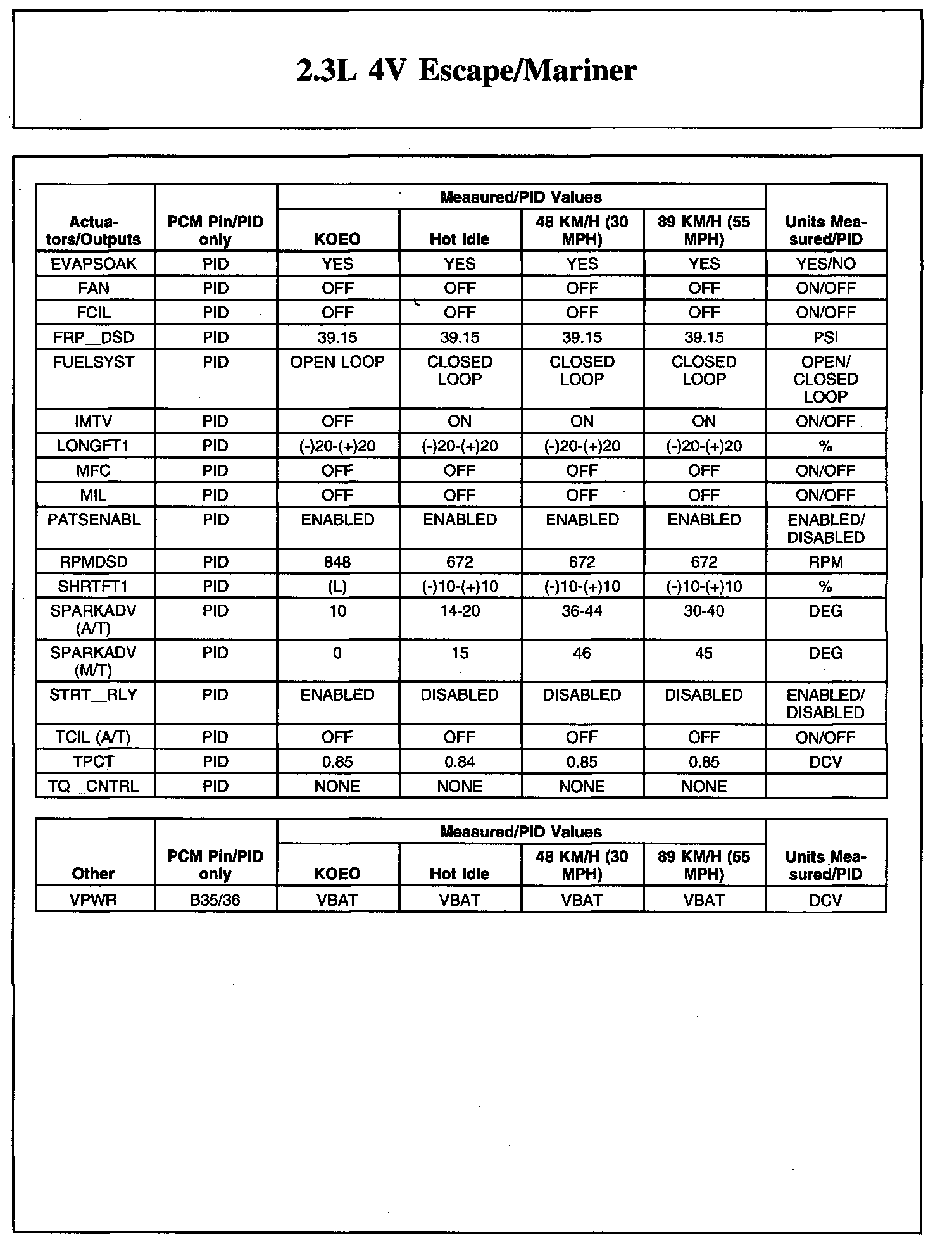 The Typical Diagnostic Reference Value Charts do not display fault parameter identifications (PIDs). These are PIDs which indicate a hard fault with the circuit. They display a value of YES or NO and are PIDs ending with the letter F.