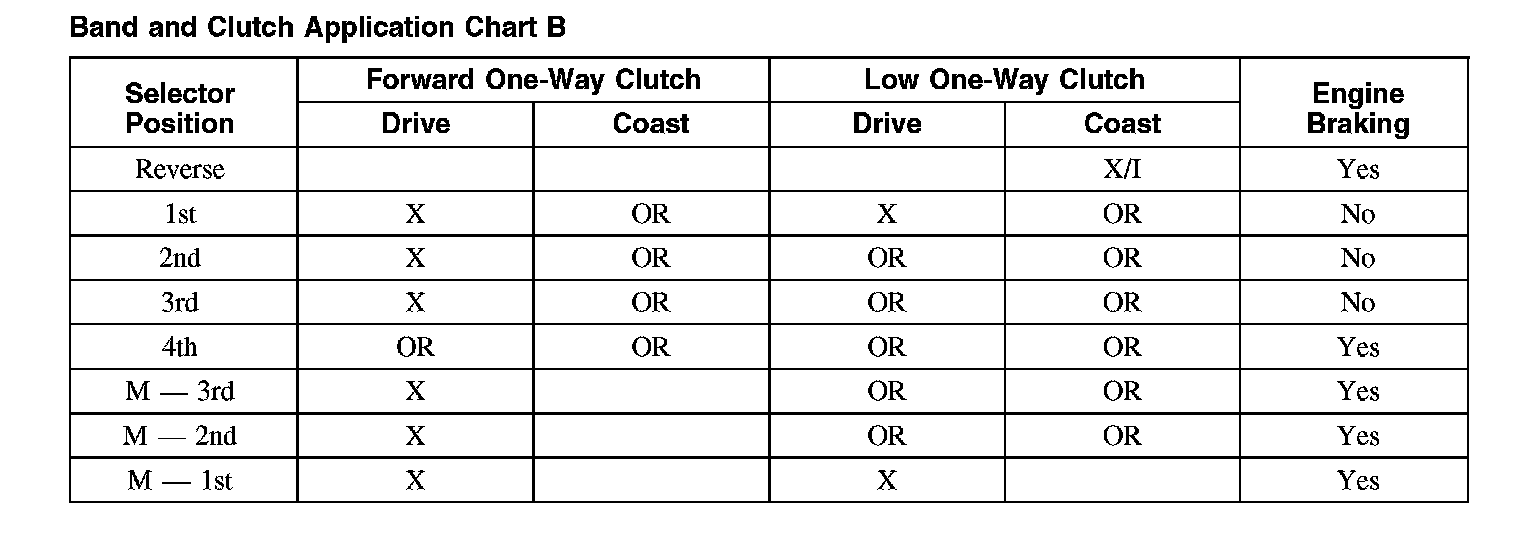 Band and Clutch Application Chart B