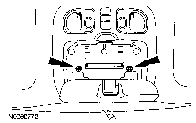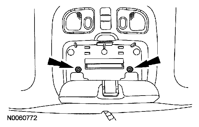 3. Open the front overhead console door, remove the 2 screws and the overhead console.