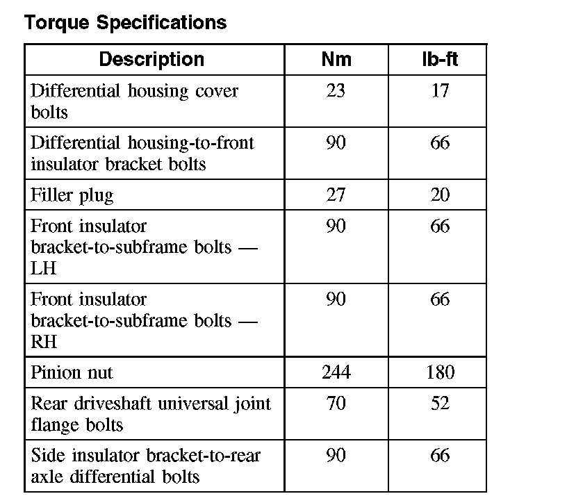 Torque Specifications: