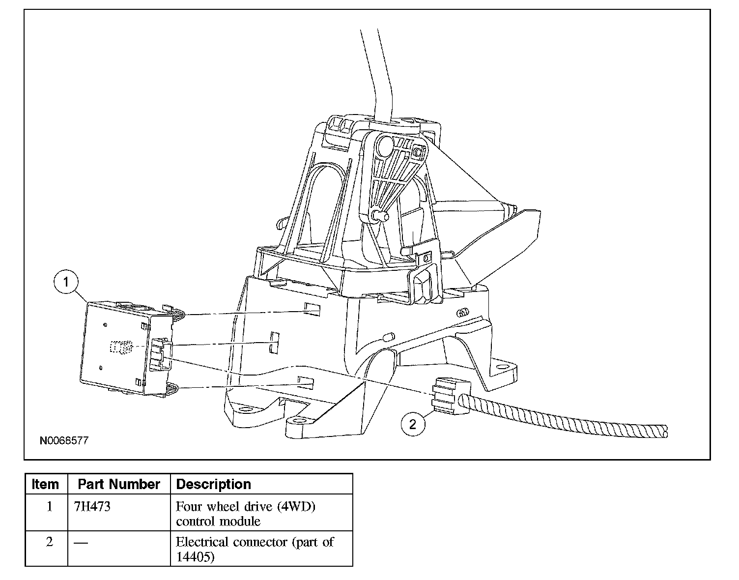 3. Lift upward on the module to release the fasteners from the shifter base. Remove the four wheel drive (4WD) control module.