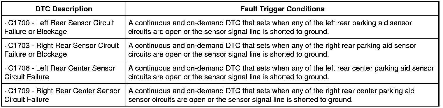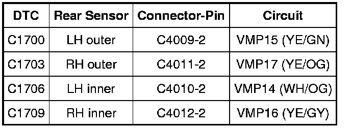 - Disconnect: Suspect Parking Aid Sensor C4009, C4010, C4011 or C4012.