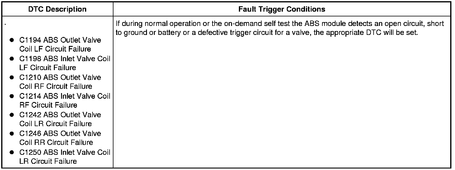 REPAIR all other ABS module DTCs before repairing any valve coil failure DTCs. REFER to the ABS Module DTC Chart. ABS Module DTC Chart