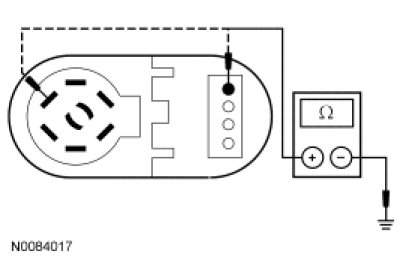- For vehicles equipped with a class II trailer tow package, measure the resistance between the trailer tow connector ground supply pin, circuit RAT08 (WH), harness side and ground.