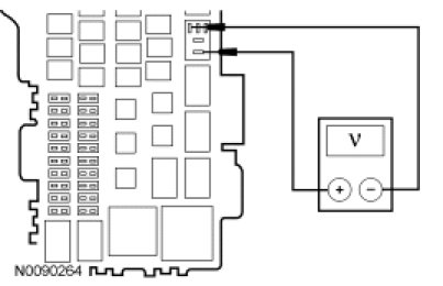 - Measure the voltage between the trailer tow parking lamp relay pin 3, BJB, circuit SBB57 (RD), face side and the trailer tow parking lamp relay pin 2, circuit GD123 (BK/GY), BJB face side.