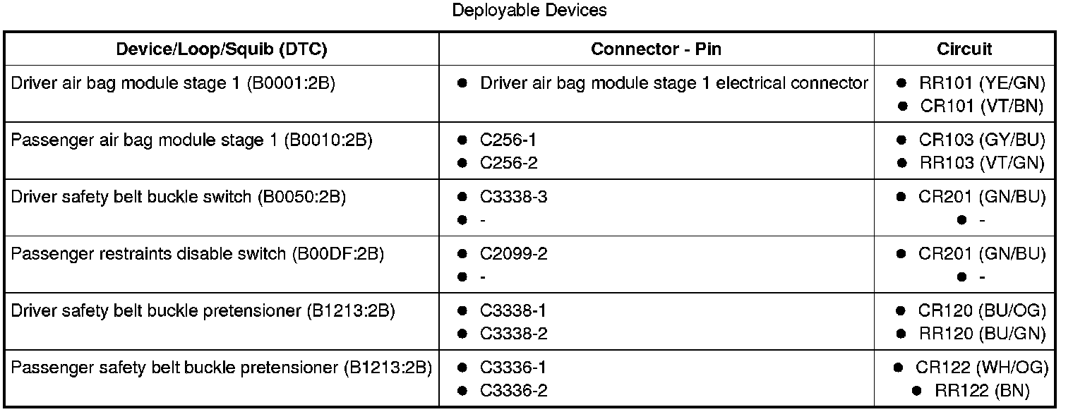 NOTE: SRS components should only be disconnected or reconnected when instructed to do so within a pinpoint test step. Failure to follow this instruction may result in incorrect diagnosis of the SRS.