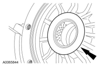 16. Inspect the Teflon(R) seals in the rear of the case. If the seals are worn or damaged, install new scarf cut seals.