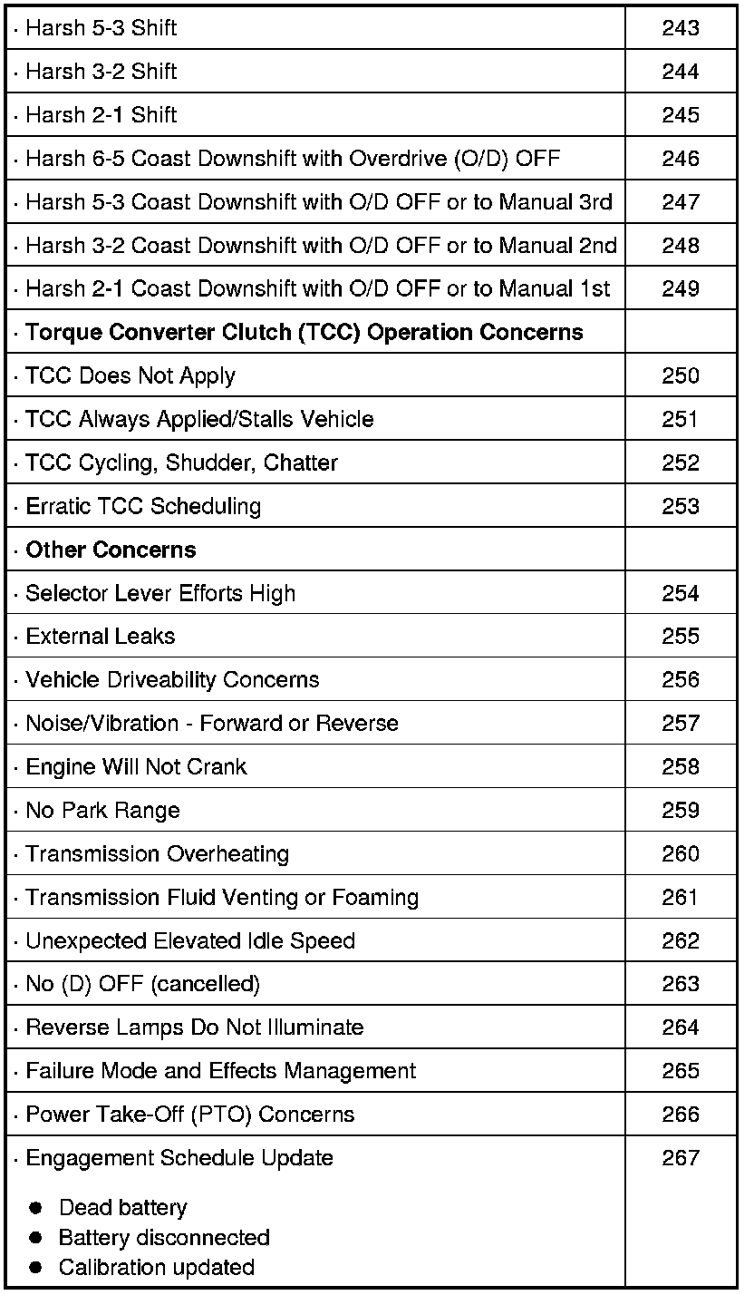4. NOTE: Not all concerns and conditions with electrical components will set a DTC. Be aware that the components listed may still be the cause. Verify correct function of these components prior to proceeding to the hydraulic/mechanical components listed.