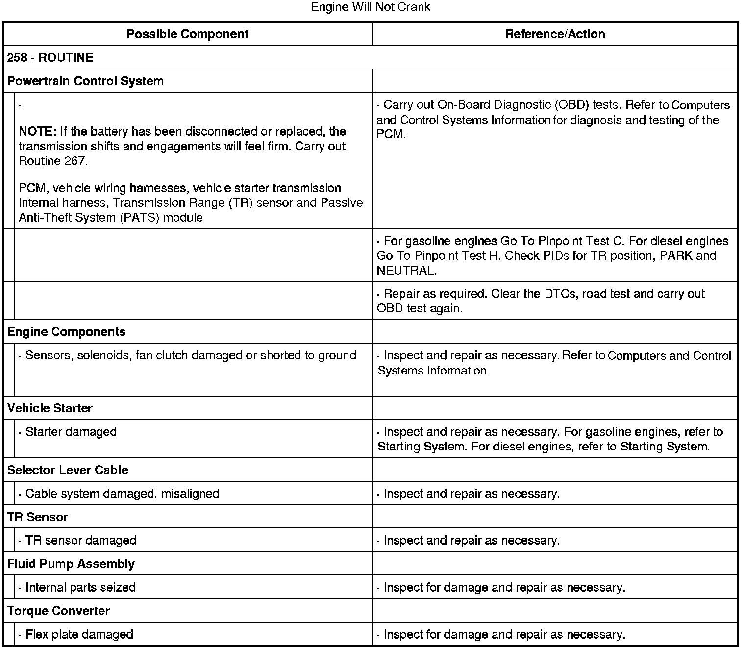 Engine Will Not Crank: