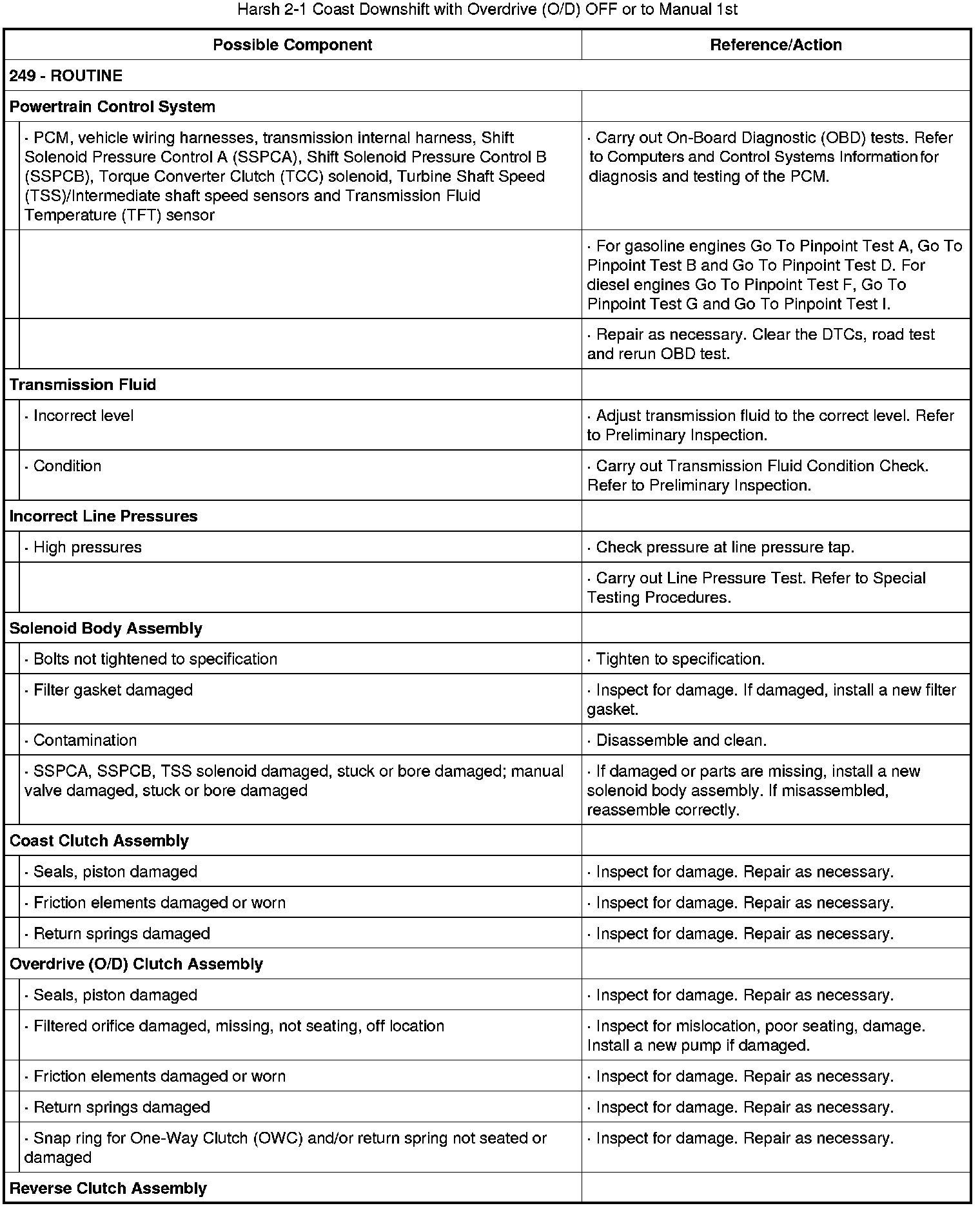 249, Harsh 2-1 Coast Downshift With Overdrive (O/D) Off Or To Manual 1st