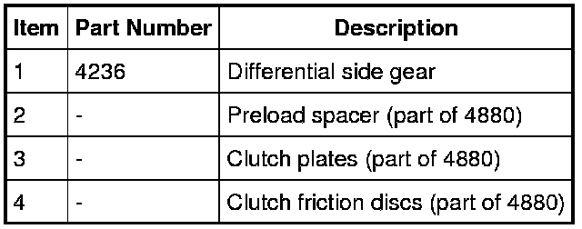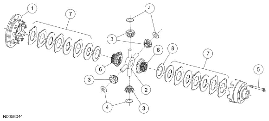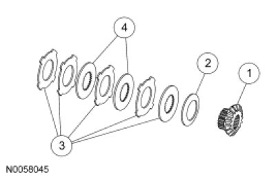 3. NOTE: For vehicles operating at close to their Gross Vehicle Weight Rating (GVWR), typically emergency vehicles and vehicles equipped with a fifth wheel, there may be circumstances of continuing chatter/bumping in turns despite the installation of new parts and lubricant. In cases such as this, it is permissible to reassemble the rear axle disc and plate kit with the clutch disc adjacent to the differential side gear, resulting in 2 clutch plates together. This results in 3 friction surfaces instead of the normal 5, lowering the torque to rotate the wheel by 40%.