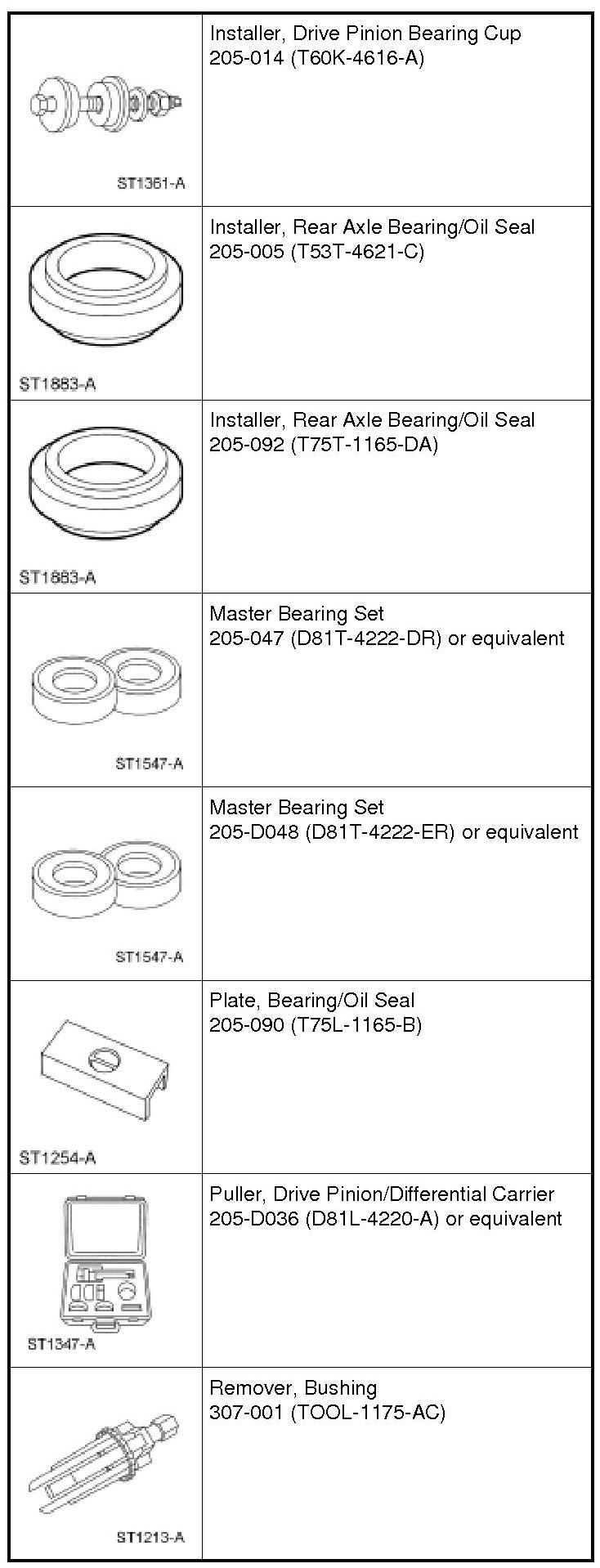NOTE: The rear axle uses a combination of differential bearing shims and selective outboard spacers to control differential case end play. The old outboard spacers provide a good starting point when setting end play. However, if additional shimming is necessary, beyond what the hardened differential bearing shims can provide, select and install different thickness outboard spacers.
