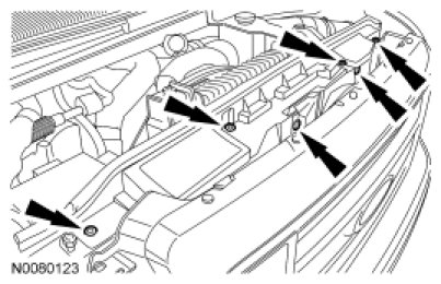 8. Position the upper air deflector and install the 6 pushpin retainers.