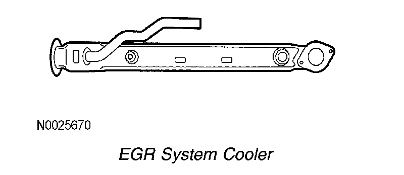 The exhaust gasses are directed through the EGR system cooler to remove heat before the gasses arrive at the EGR valve. Engine coolant is used to reduce the exhaust gas temperature by directing coolant flow through the EGR system cooler.