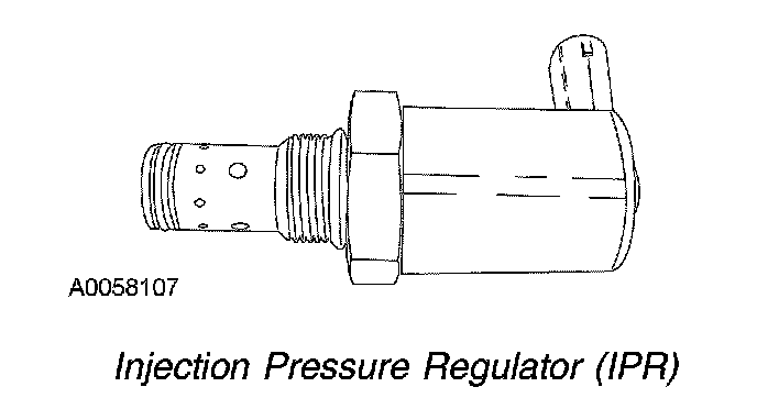 The IPR is a PWM variable position valve that regulates the pressure in the ICP system. The IPR restricts the return flow path for oil from the high pressure pump. As the duty cycle increases, the IPR restriction to the drain increases, thus increasing the ICP. The IPR duty cycle is controlled by the PCM and is modulated from 0 to 65% depending upon the desired injection control pressure.