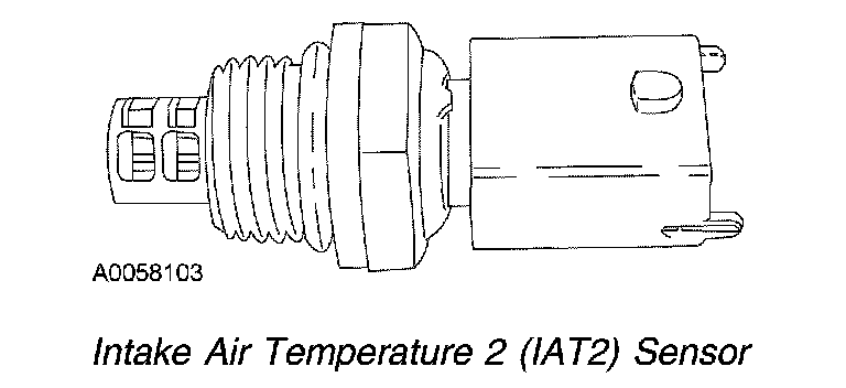 The IAT2 sensor is located in the intake manifold. The sensor provides a manifold air temperature signal to the PCM. The PCM uses the IAT2 signal to control timing and fuel rate during cold starts and provide an input to the cold idle kicker