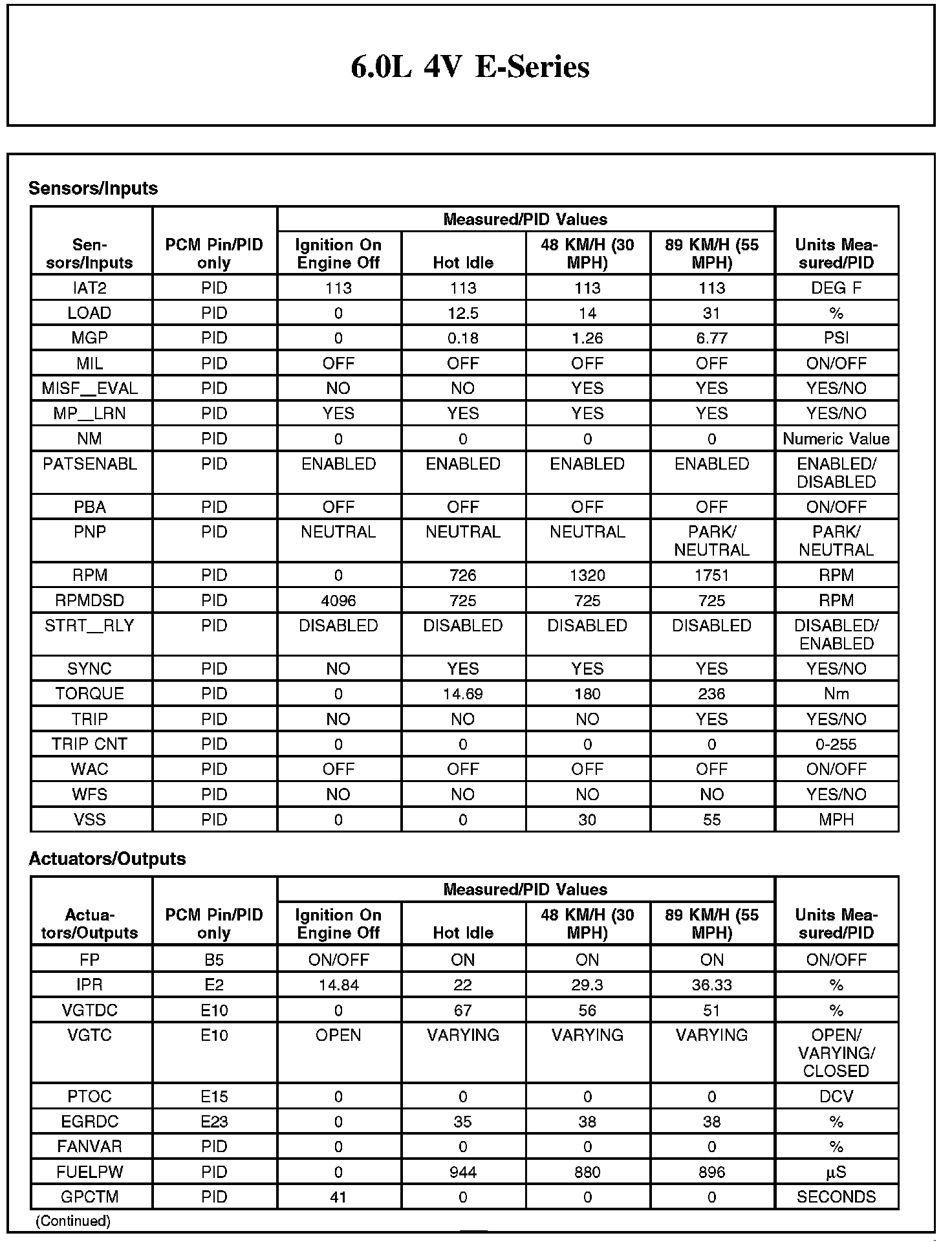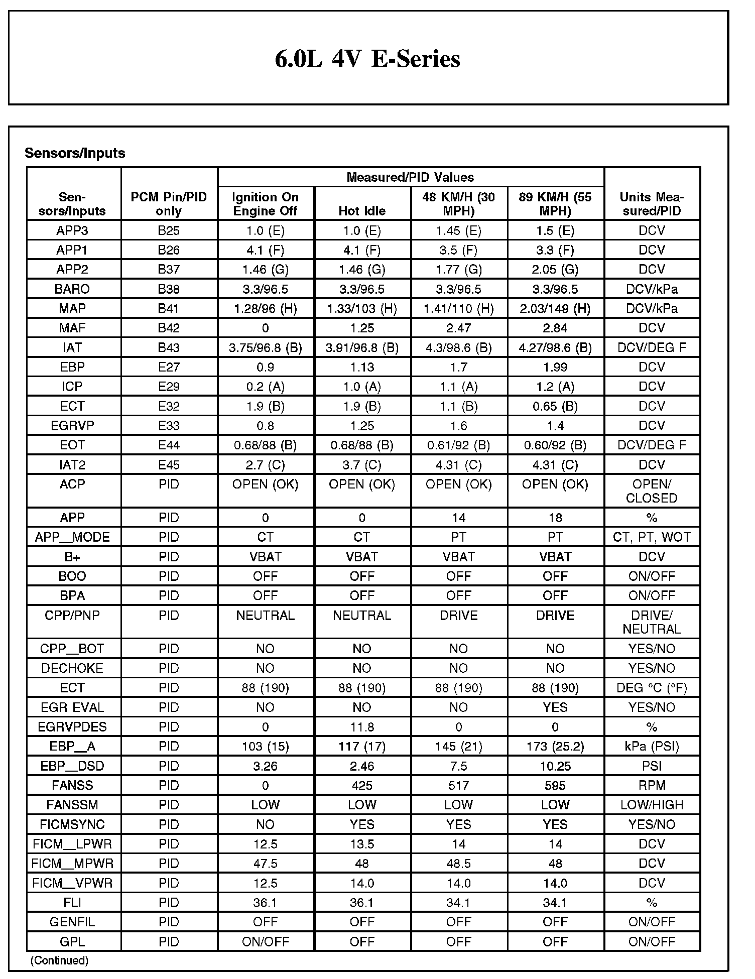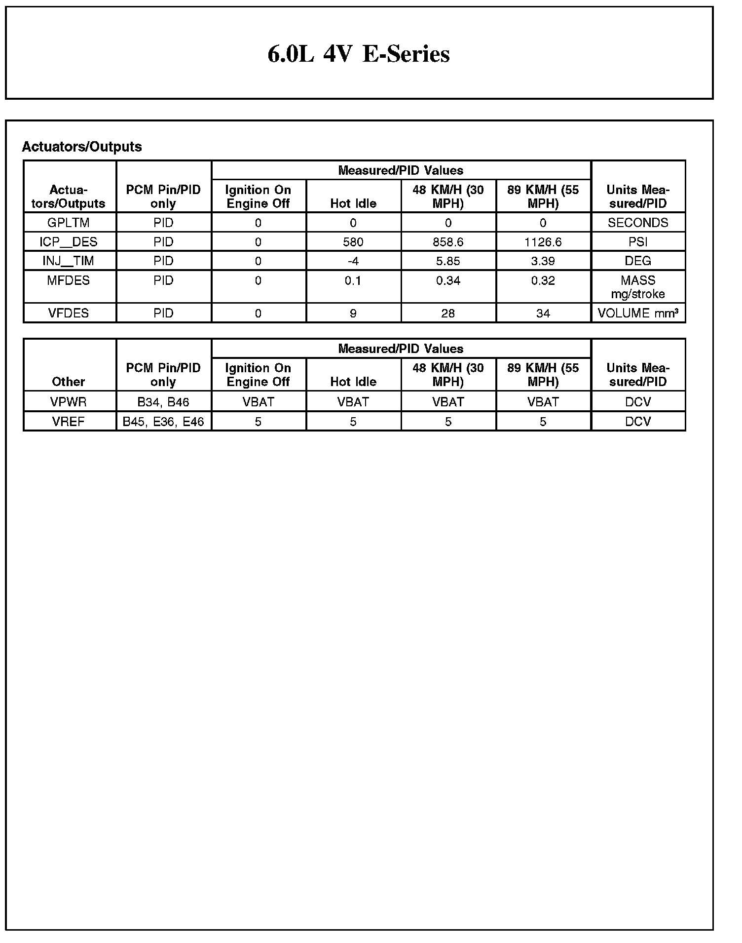 TYPICAL DIAGNOSTIC REFERENCE VALUES6.0L 4V E-Series (Part 1):