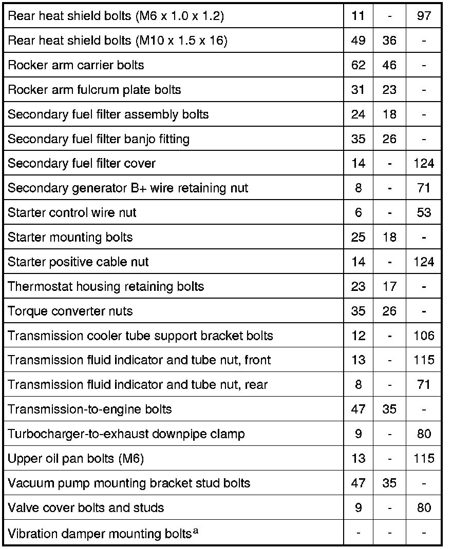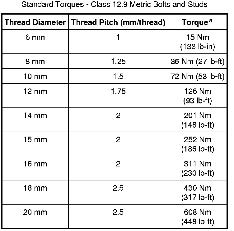 Standard Torques - Class 12.9 Metric Bolts And Studs: