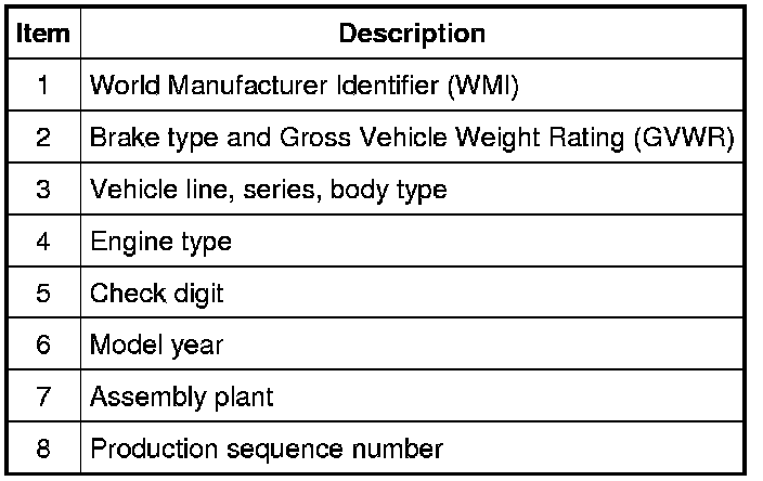 The fourth VIN position is the vehicle brake type and GVWR code, all vehicles use hydraulic brakes and driver and front passenger air bags.
