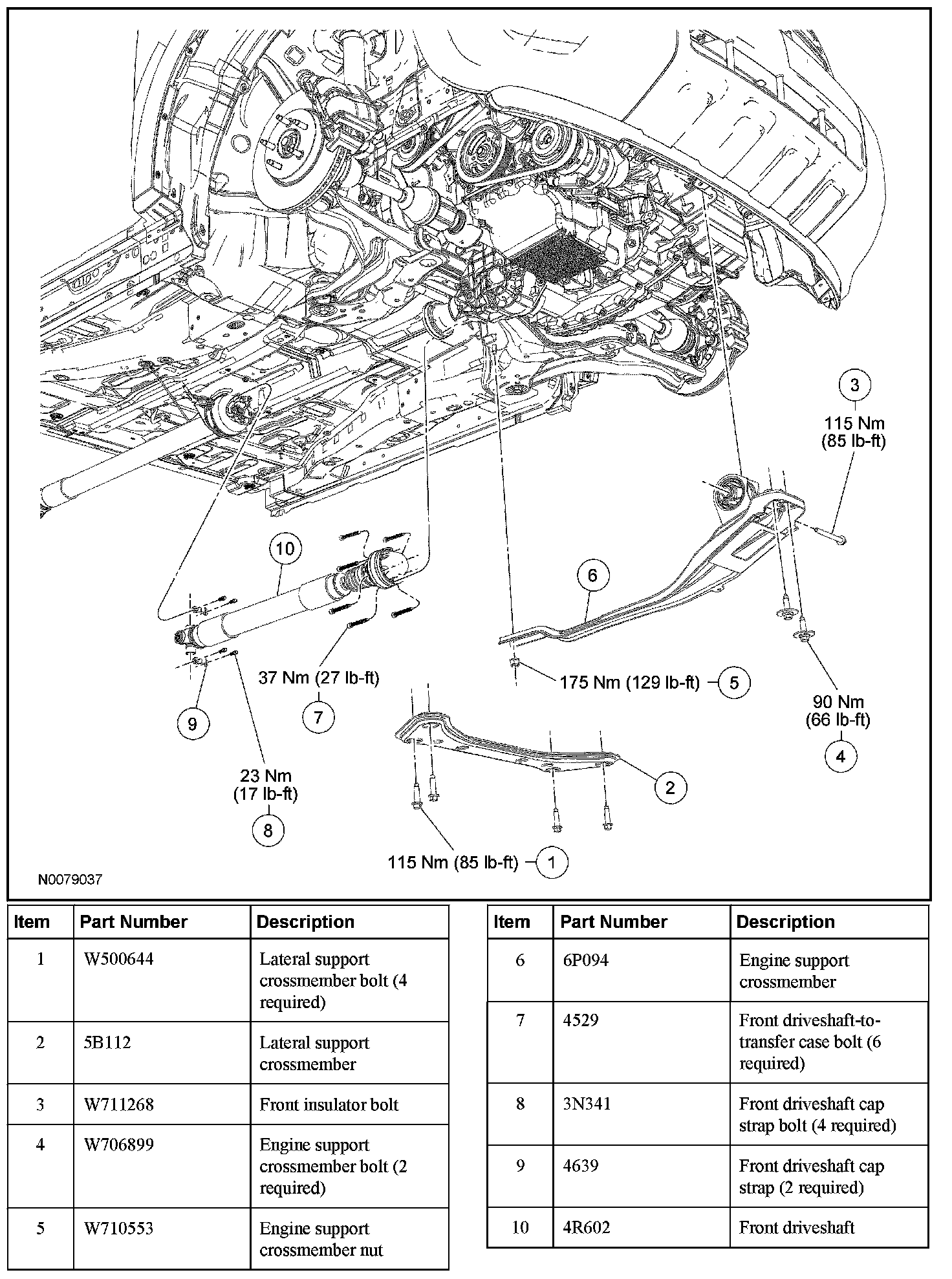 7. Remove the 4 bolts (2 each side) and the lateral support crossmember.