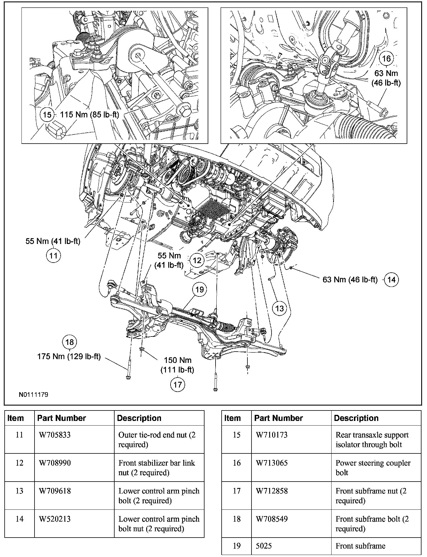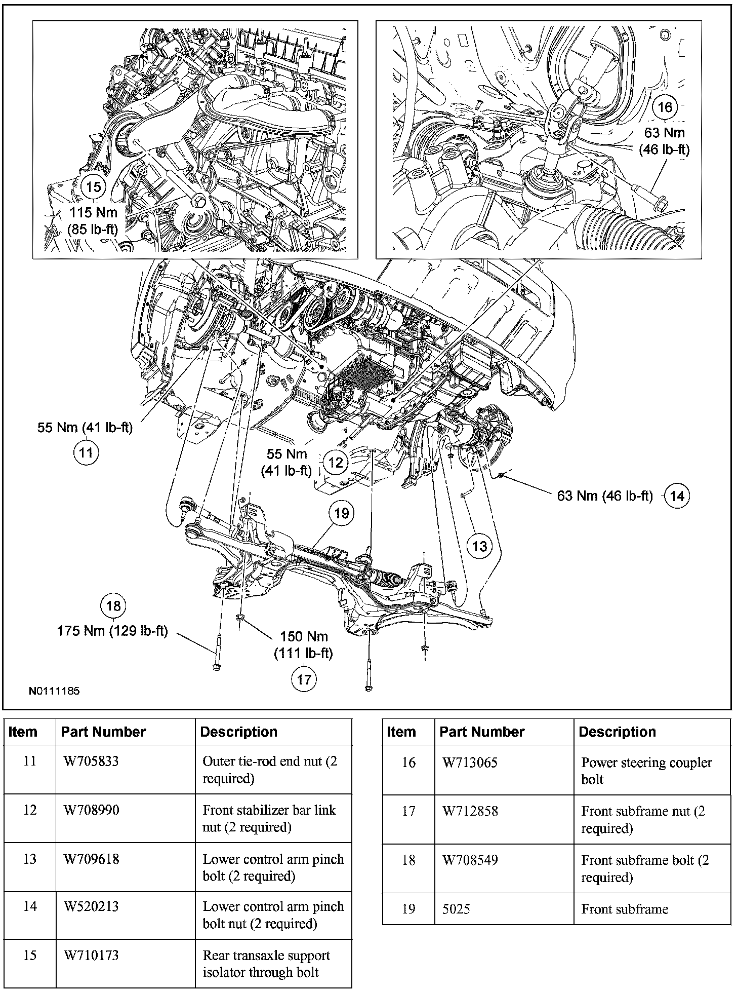 NOTICE: Suspension and subframe fasteners are critical parts because they affect performance of vital parts and systems and their failure can result in major service expense. A new part with the same part number must be installed if installation becomes necessary. Do not use a replacement part of lesser quality or substitute design. Torque values must be used as specified during reassembly to make sure of correct retention of these parts.