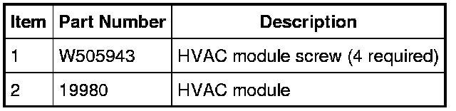 NOTE: When installing a new HVAC module on vehicles equipped with Electronic Manual Temperature Control (EMTC), the Programmable Module Installation (PMI) procedure must be carried out to configure the new module to the vehicle. Refer to Information Bus.