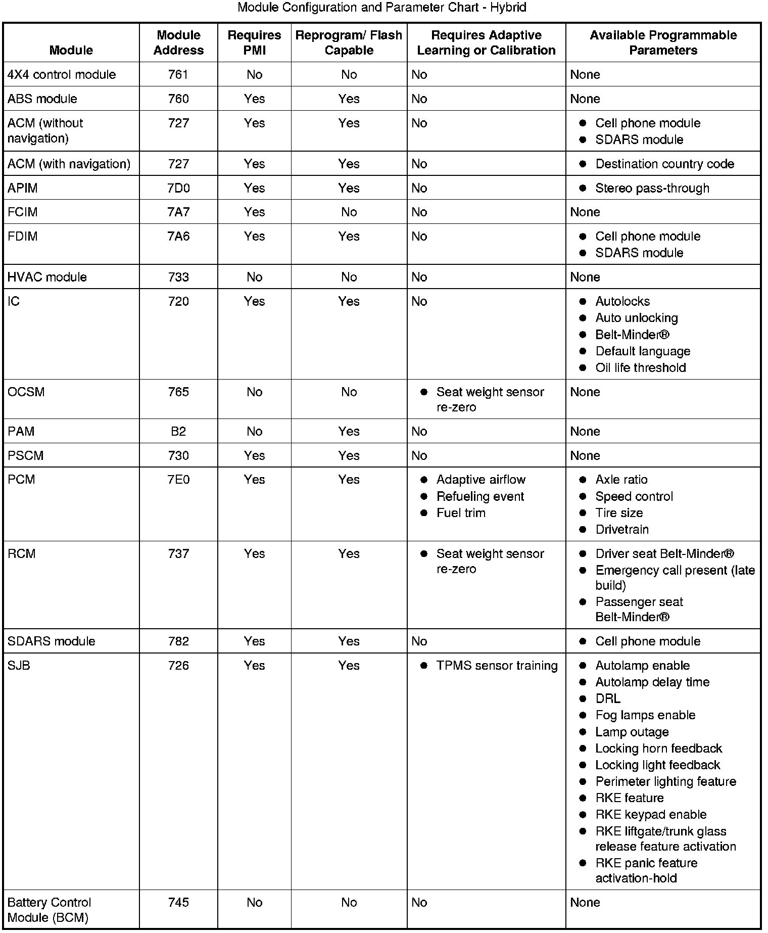 Programmable parameters are customer preference items that may be modified by the dealer via scan tool or in some cases modified by the customer following a procedure listed in the vehicle Owner's Literature. While many configuration options may exist for a module, only a few of these options are programmable parameters.