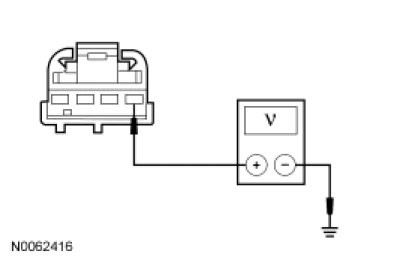 - Measure the voltage between the FCIM C2402-1, circuit SBP14 (BN/RD), harness side and ground.