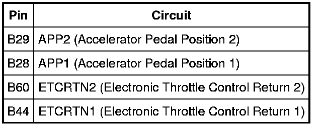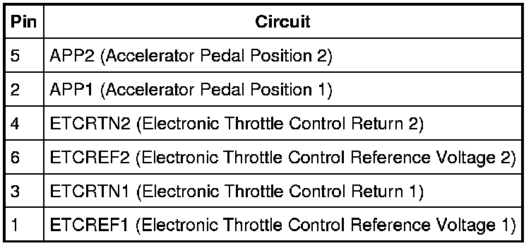 - harness circuits: APP1, APP2, ETCREF1, ETCREF2, ETCRTN1, ETCRTN2