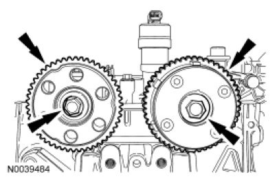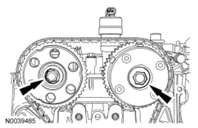 Install the camshaft sprockets and the bolts. Do not tighten the bolts at this time.