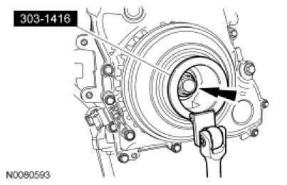 NOTICE: Do not loosen or remove the crankshaft pulley bolt without first installing the special tools as instructed in this procedure. The crankshaft pulley and the crankshaft timing sprocket are not keyed to the crankshaft. The crankshaft, the crankshaft sprocket and the pulley are fitted together by friction, using diamond washers between the flange faces on each part. For that reason, the crankshaft sprocket is also unfastened if the pulley bolt is loosened. Before any repair requiring loosening or removal of the crankshaft pulley bolt, the crankshaft and camshafts must be locked in place by the special service tools, otherwise severe engine damage can occur.