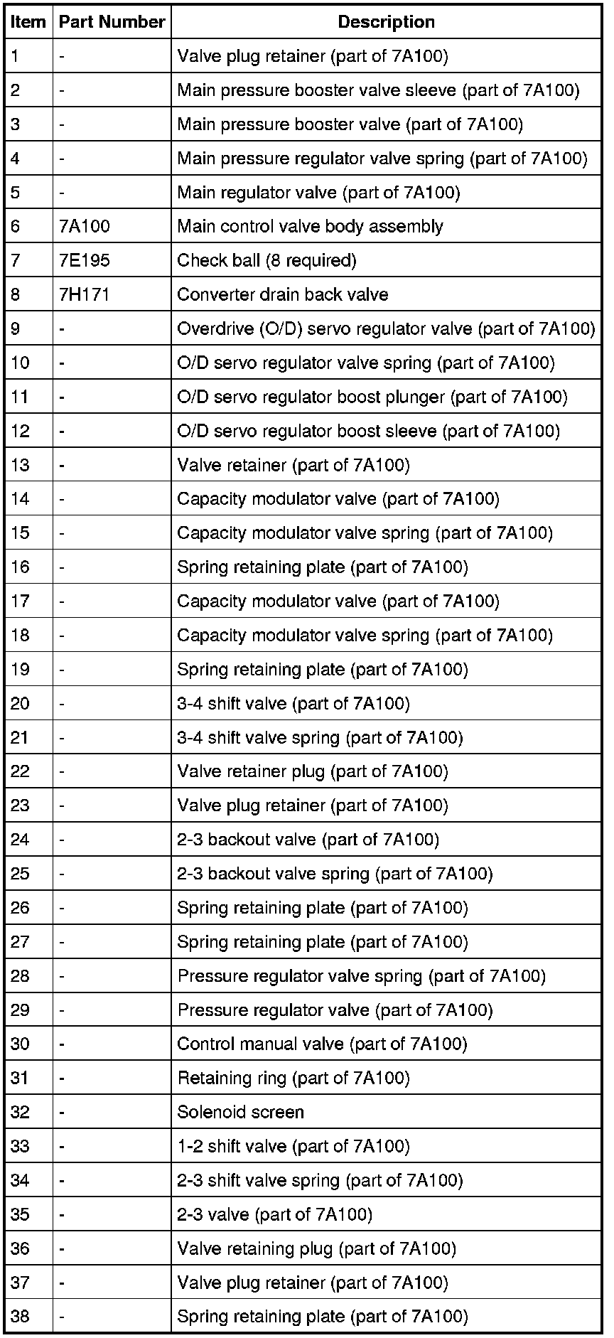 Main Control Valve Body Disassembled View Legend (Part 1):
