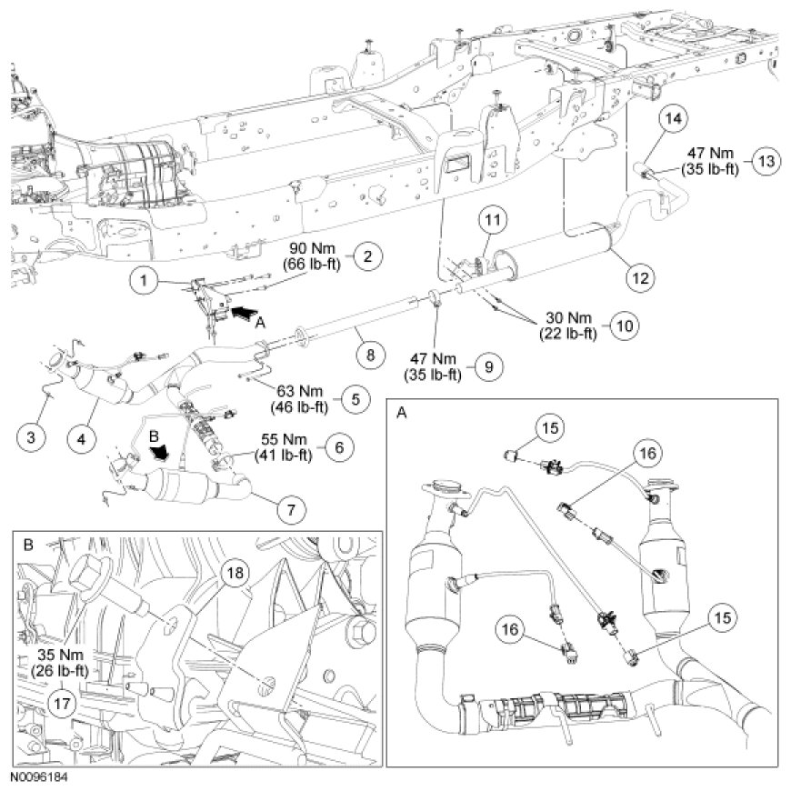 NOTE: Exhaust system may vary by engine and wheelbase.